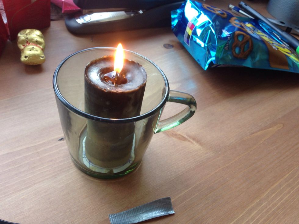 Apply flame to old wax and let it pour into the cardboard roll mold