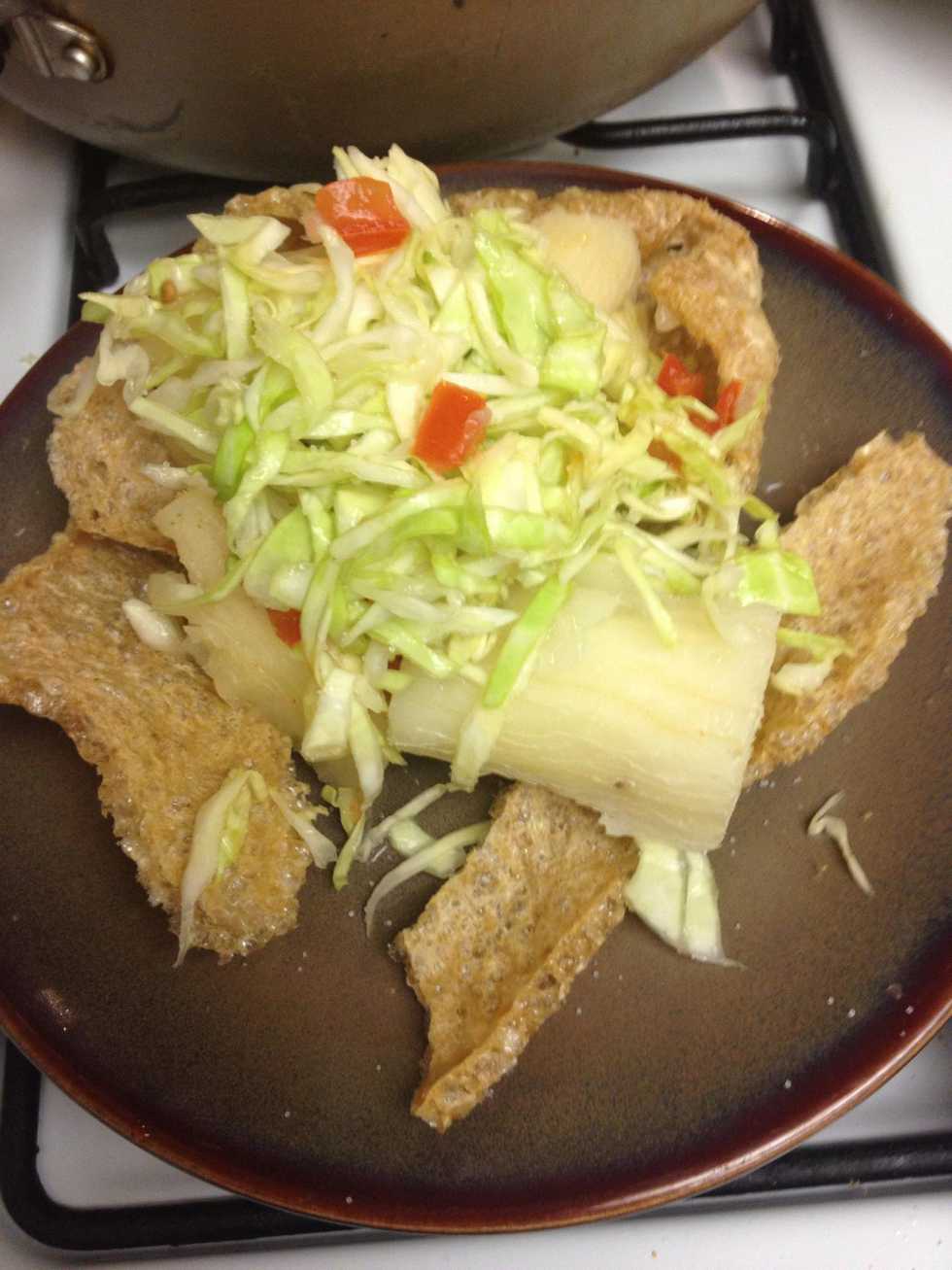 And some cabbage to your yucca and wala! I sprinkle salt over this along with more lime and Tapatio hot sauce. Enjoy!!
