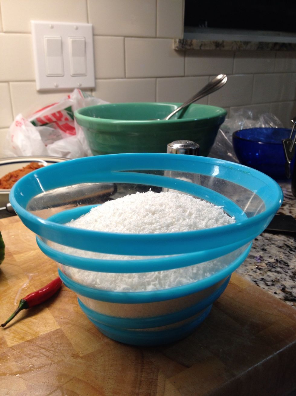 It took me a long time to prepare my favorite national dish of Malaysia. I am glad to find the ingredient an Asian store in Tustin. It's not exactly follow the same recipe of Nasi Lemak but more nonya