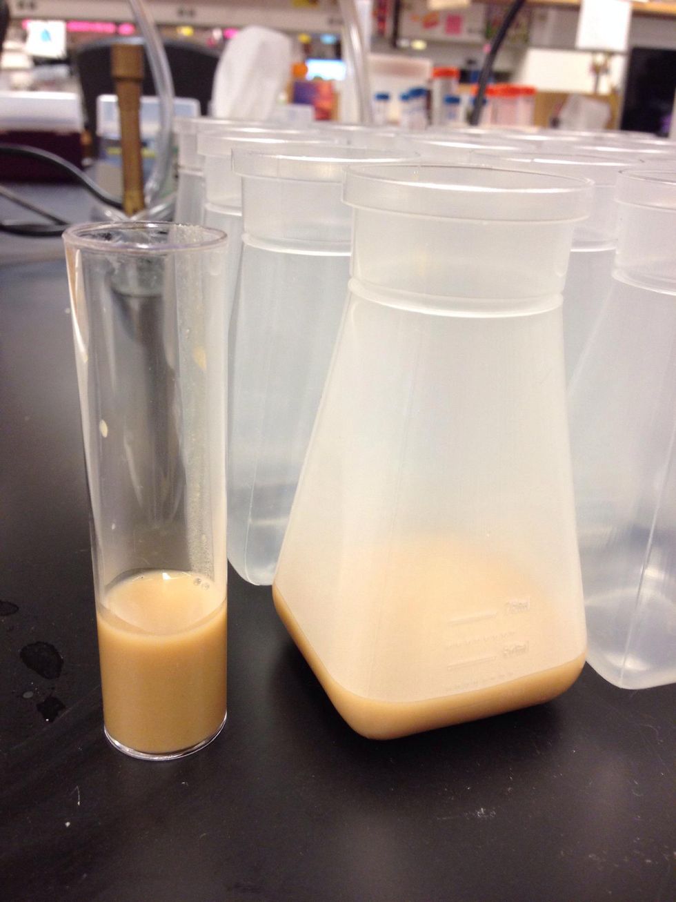 Flug bottles and vials once food is cooled and there is no condensation visible inside. If you see separation of GF, you poured while the GF food was too hot or not stirred well while cooling.