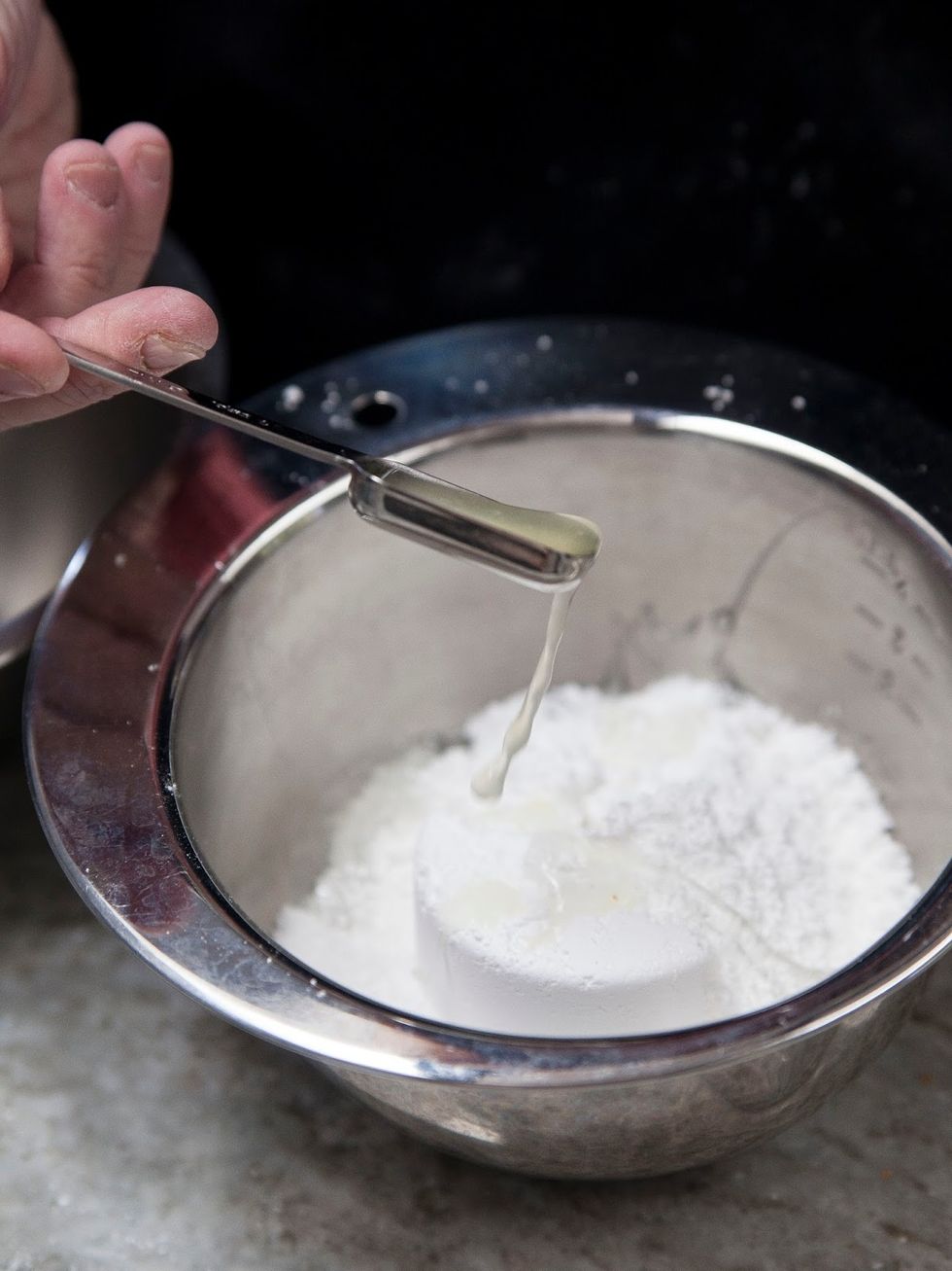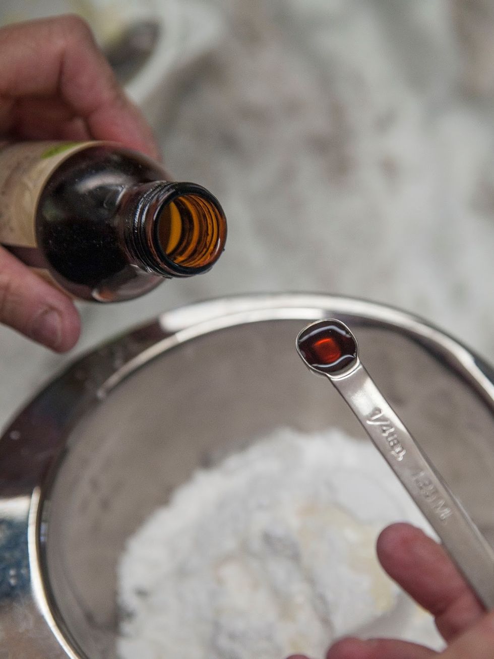 Keep beating until the eggs are combined. Add 1 tsp of vanilla to the buttermilk.