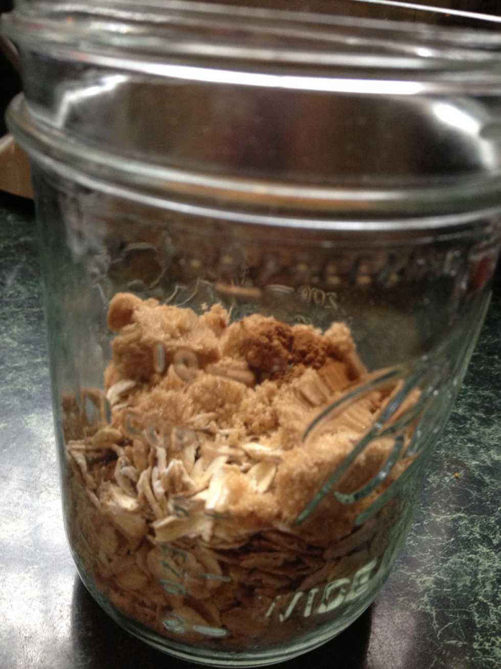 Add a little brown sugar, honey, or maple syrup. Add a sprinkle of cinnamon if you like. This could be done the night before to make it even faster. No canning jar? Recycle a glass jar!