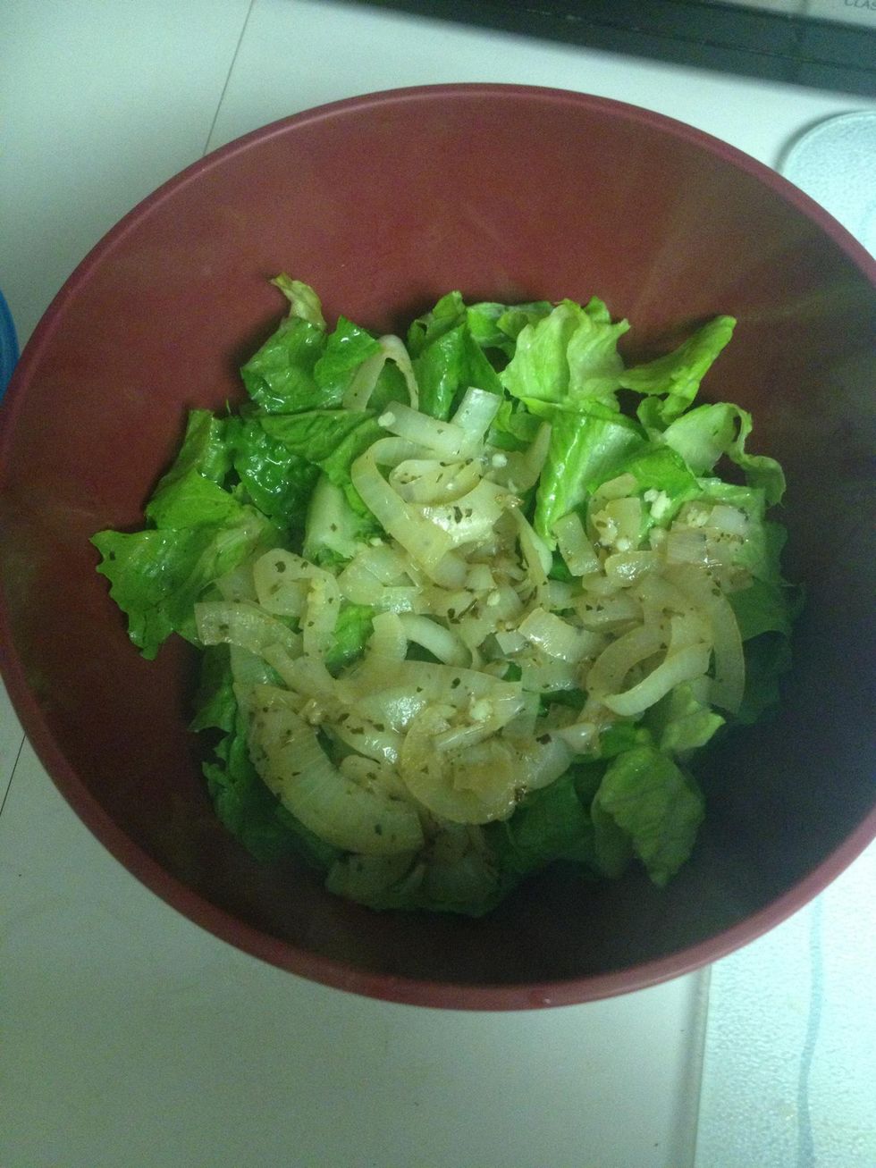 I washed some lettuce. I wish I had spinach but this is a fridge emptying salad.