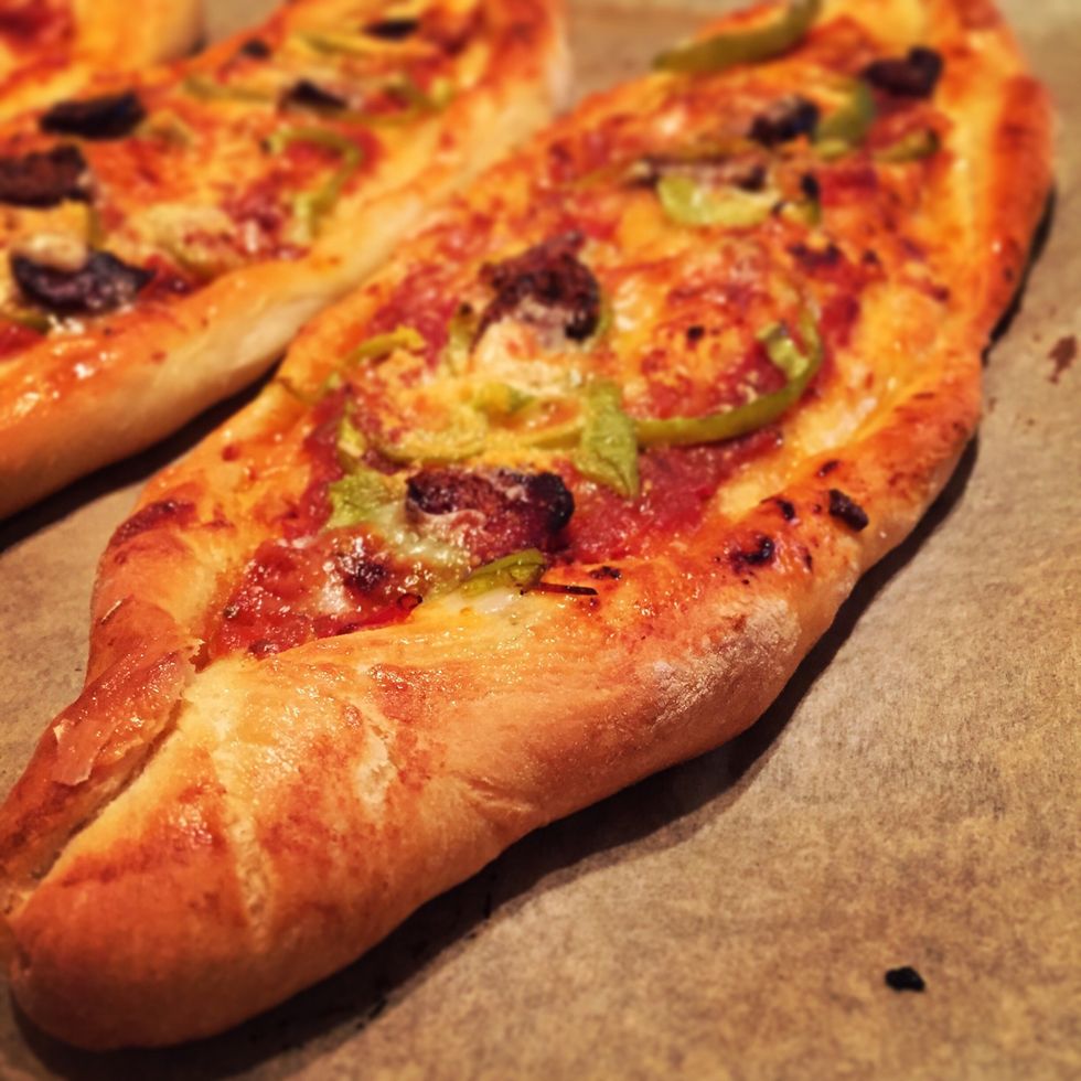 Once the dough has risen split in four pieces