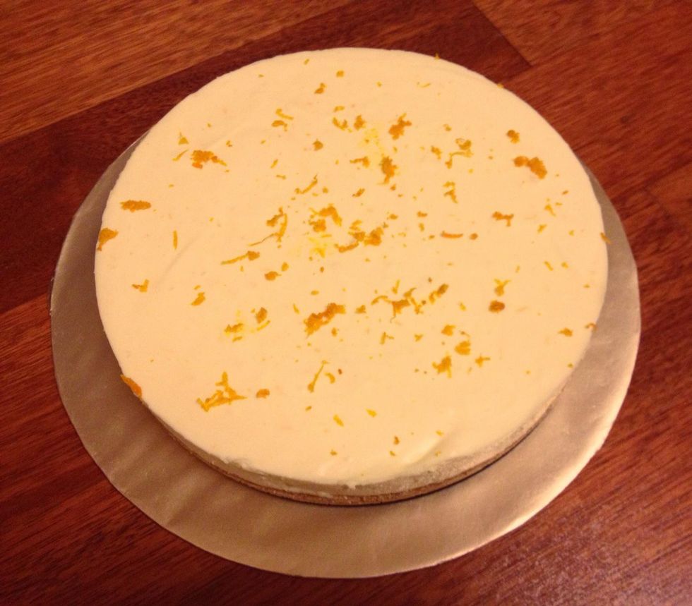 Once the cheese cake is firm, you can add a little bit of orange zest on top of the cake and it's ready to be served!