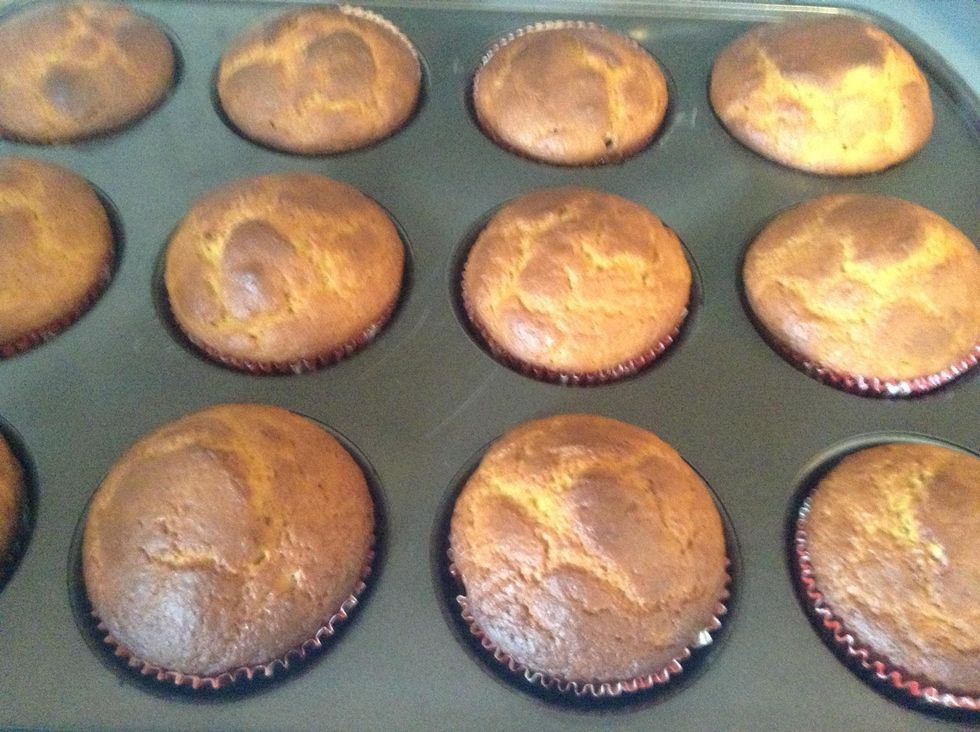 Once muffins are golden brown, insert a tooth pick into the center and make sure it comes out clean, if not bake until it does. Remove from oven, let cool. Serve warm or at room temp.