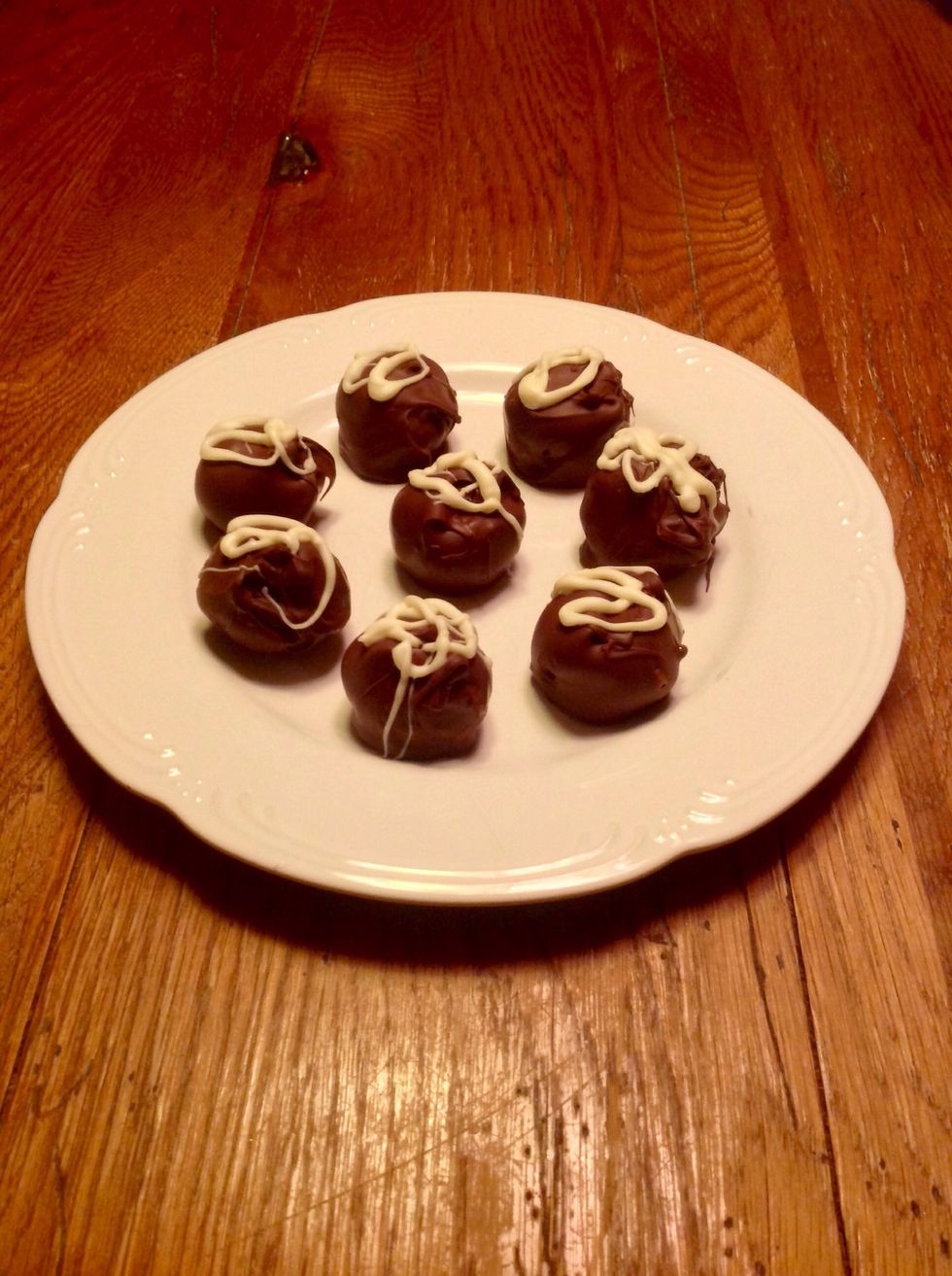 Roll into balls and place on baking pan. Place in freezer until firm.