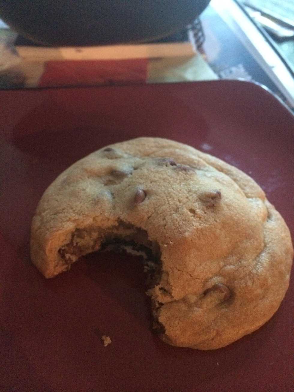 All done! Amazing warm fun filled cookies can brighten anyone's day! I made extra and brought them to the homeless people in my neighbourhood! They had big smile on face and you should try doing that