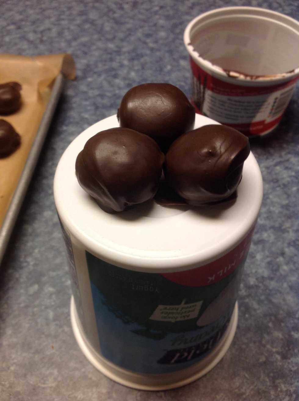 After all the truffles have been coated in chocolate, let them cool down until the chocolate is completely hardened.