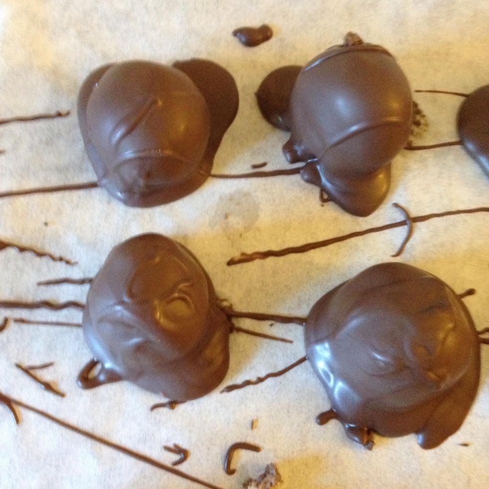 Take your oreo/cream cheese and make them into little balls and put them onto the parchment paper.