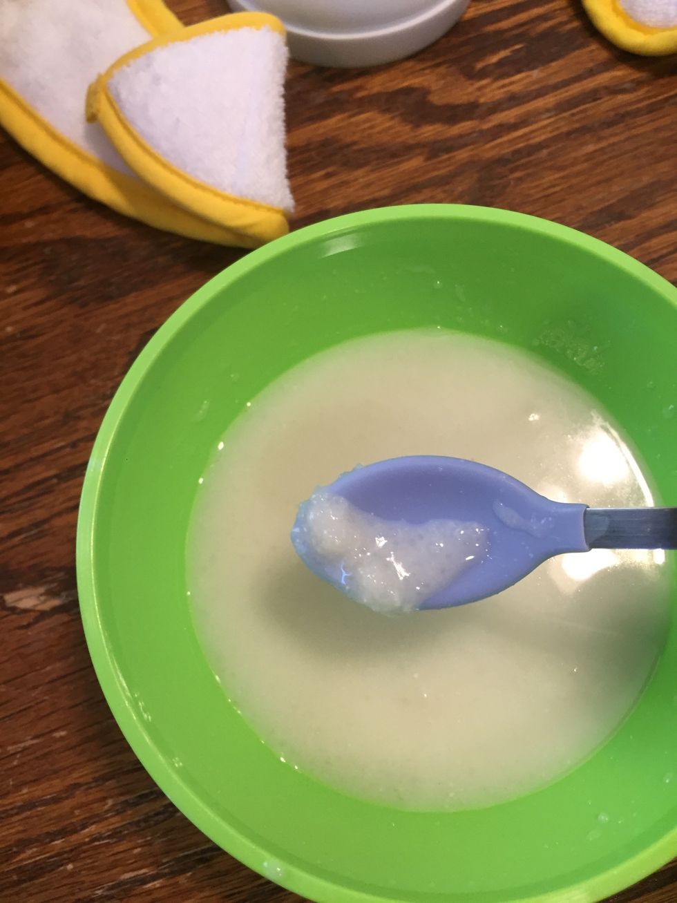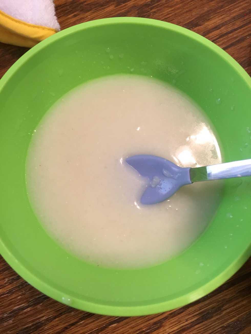 Add rice powder to boiling water stirring constantly for approximately 30 seconds