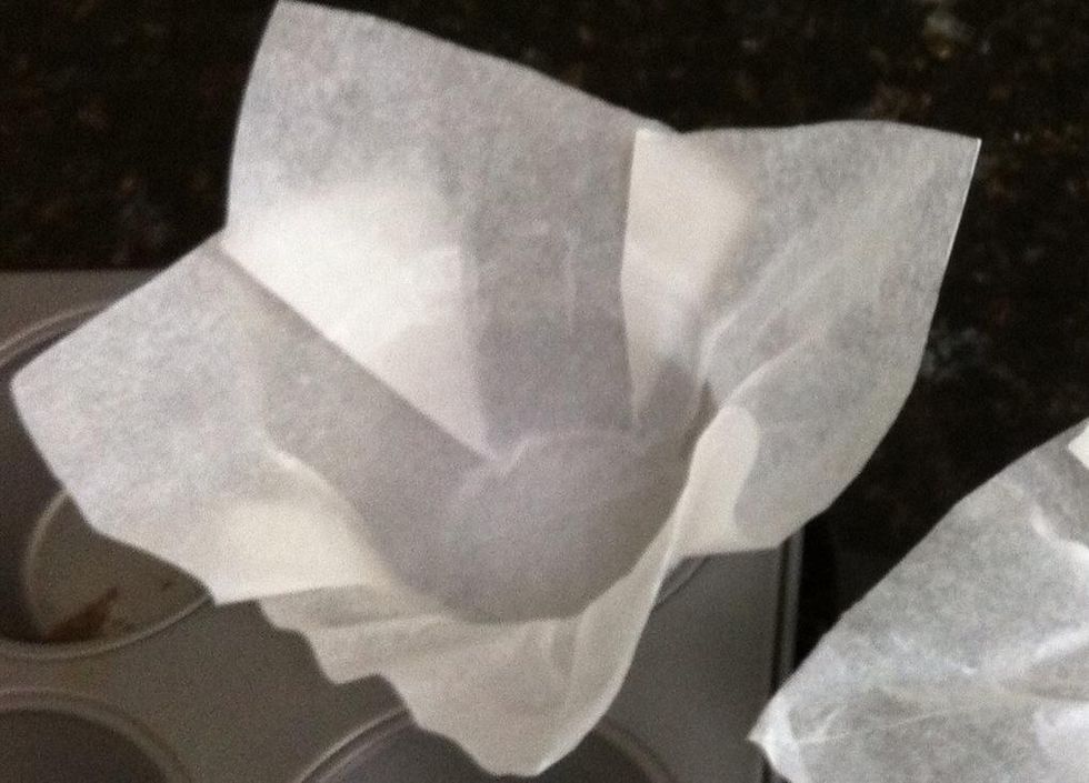 Drop your cups into the (lightly sprayed) muffin tin. Lightly spray the inside of each cup and 2/3rds fill with your muffin batter (stirred until JUST combined!.. DON'T over mix). Bake, and Enjoy.