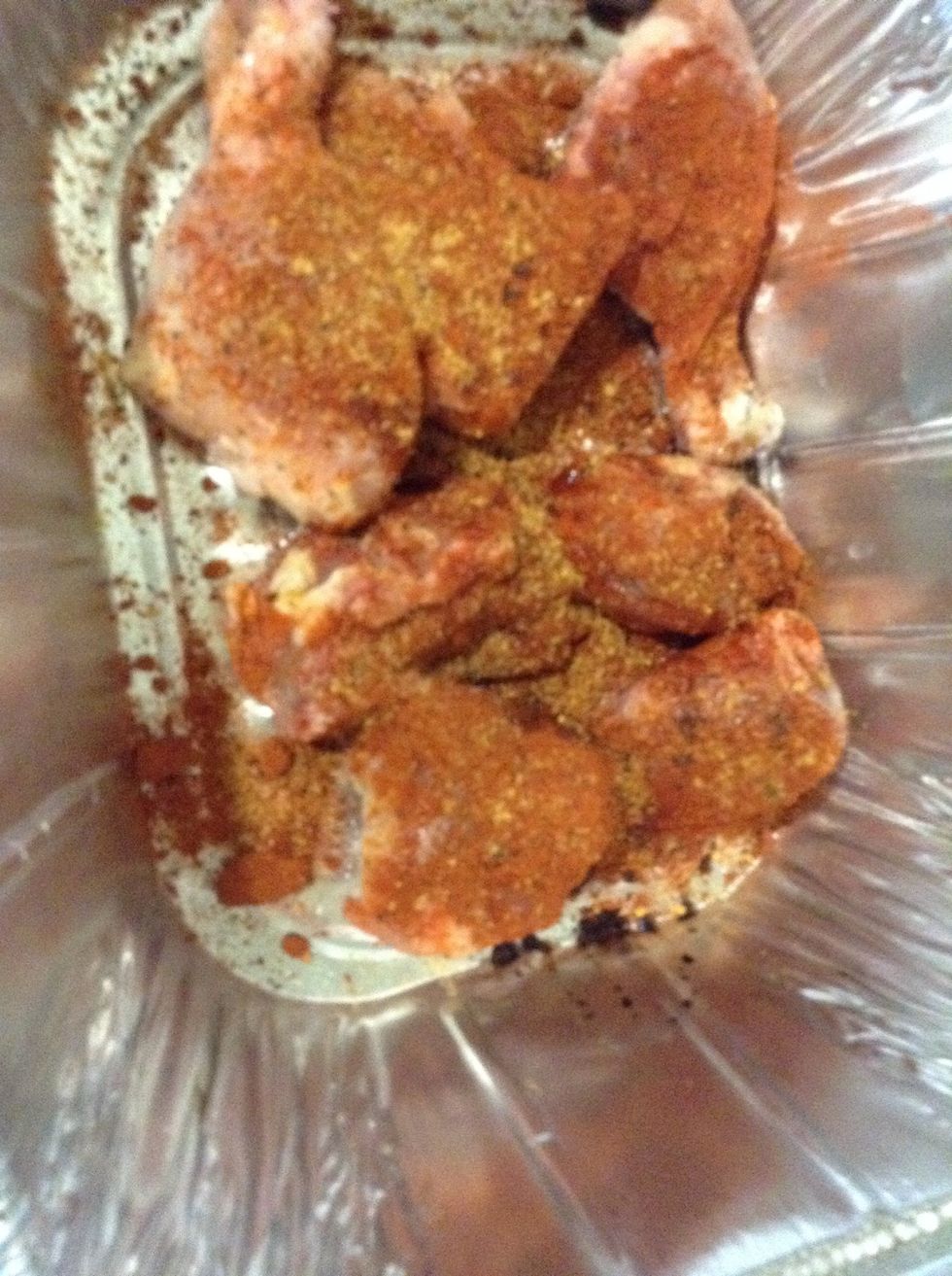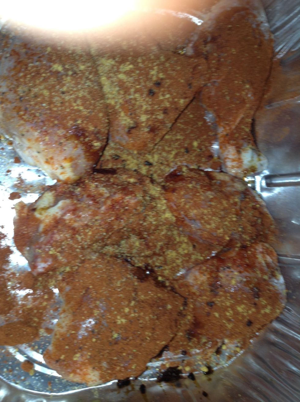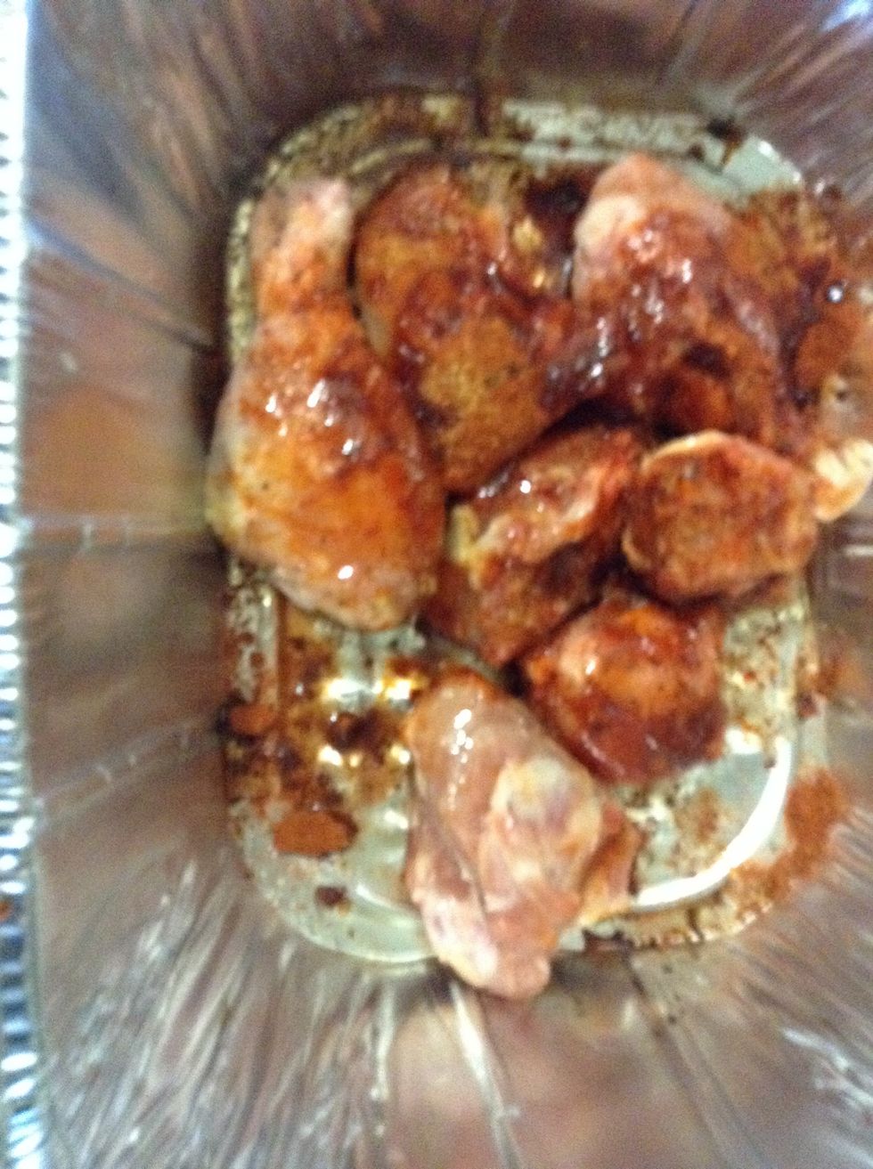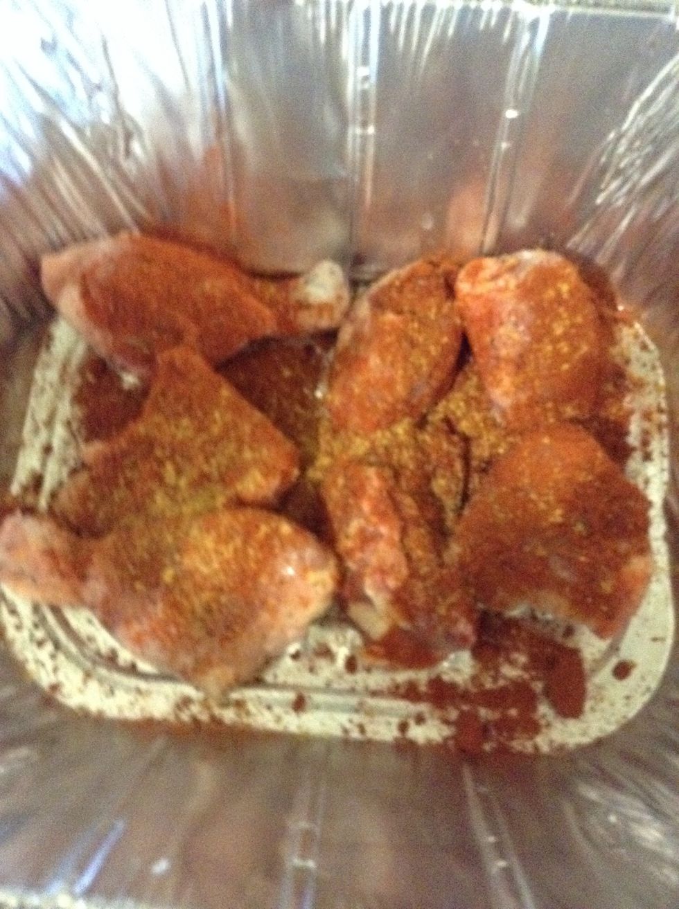 Place 7 pieces of chicken (leg and thigh) In a deep foil pan
