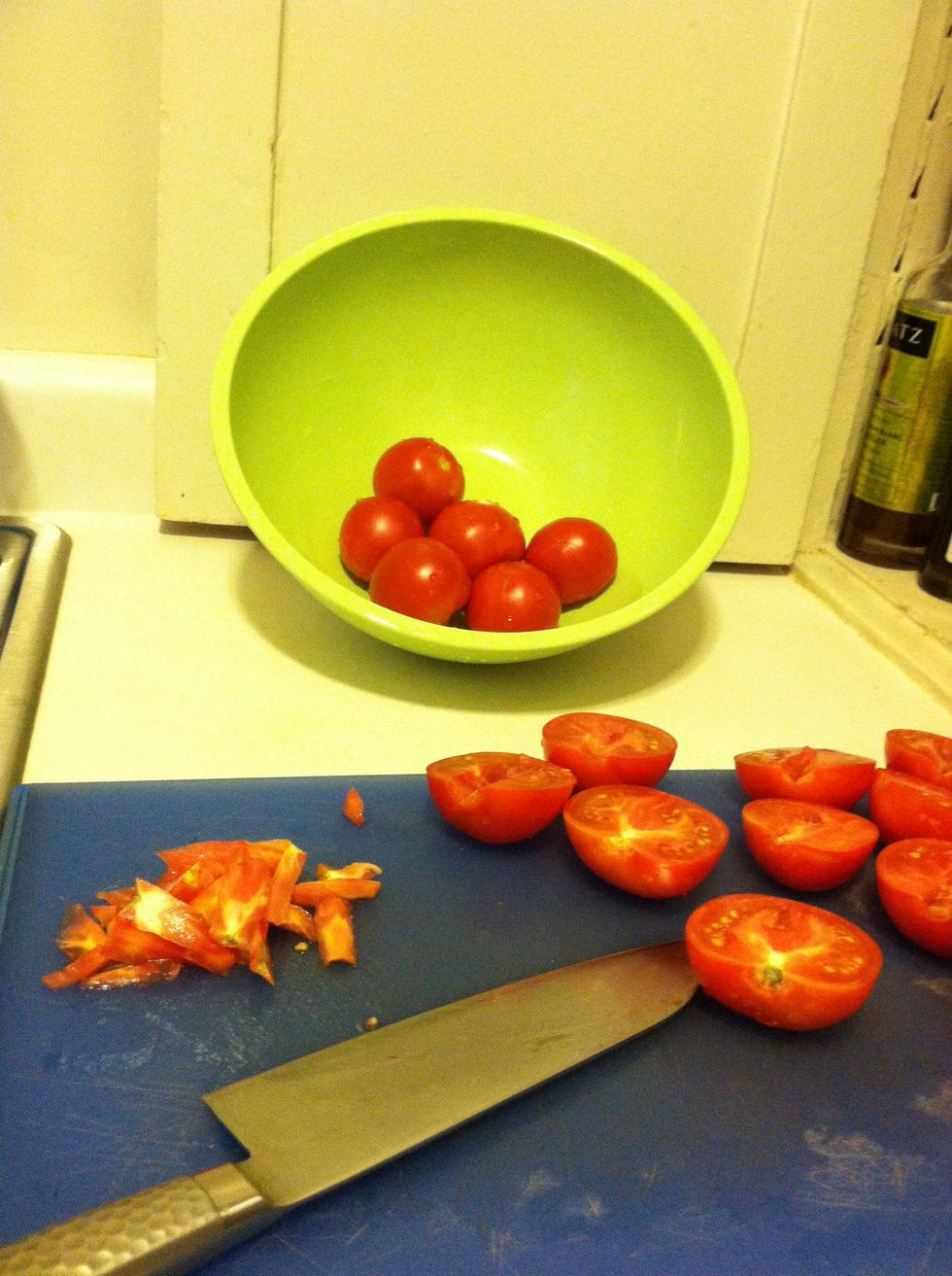 Cut each tomato in half using a sharp knife. Cut a V in the middle of each tomato to remove the coreCover a baking sheet with a layer of salt. Place the tomatoes cut-side up on a baking sheet.Place the tomatoes in the oven at 200•F for 6 hours