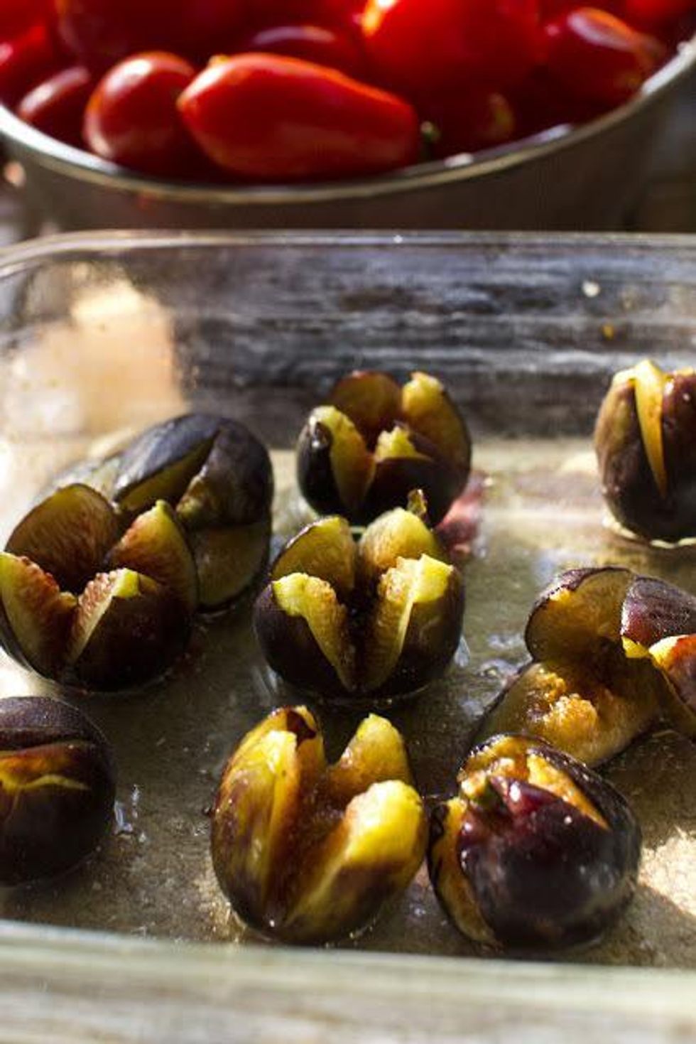 Drizzle them with a bit of olive oil and sprinkle the figs with a bit of kosher salt. Bake them in the oven for about 20 minutes.