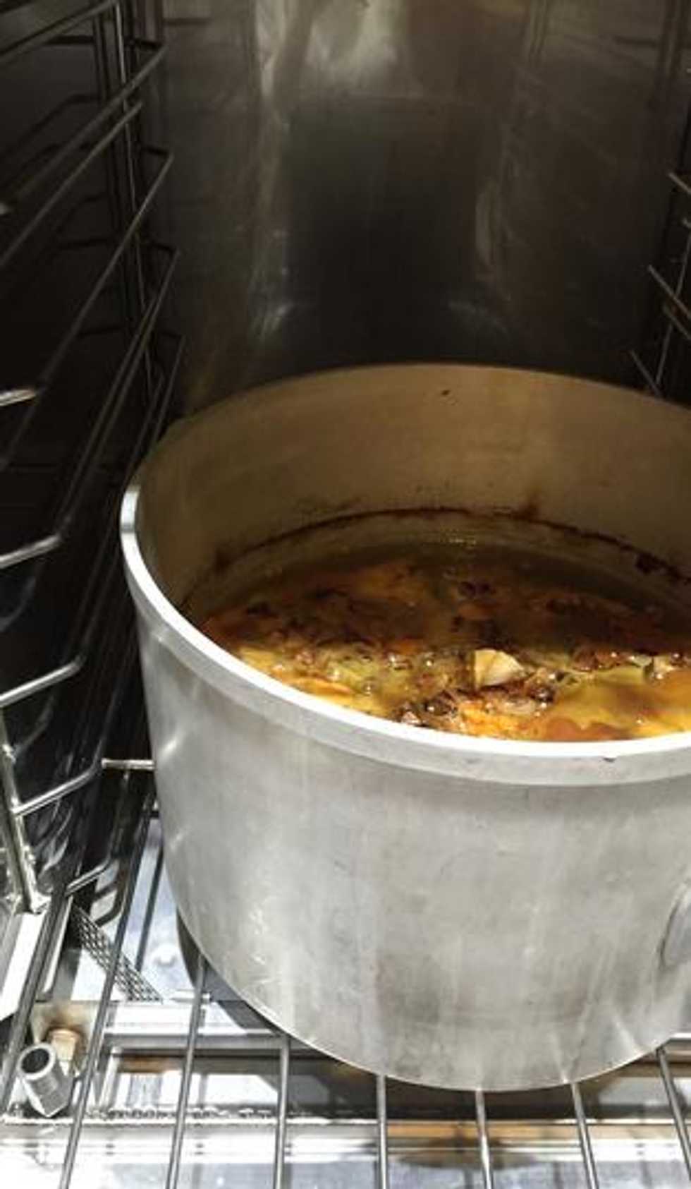 Place stock into the cook & hold.