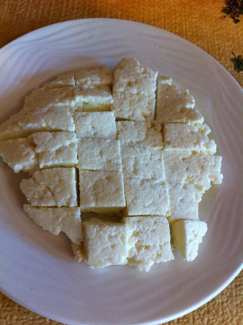 Cut Paneer into cubes and fresh home made Paneer is ready!