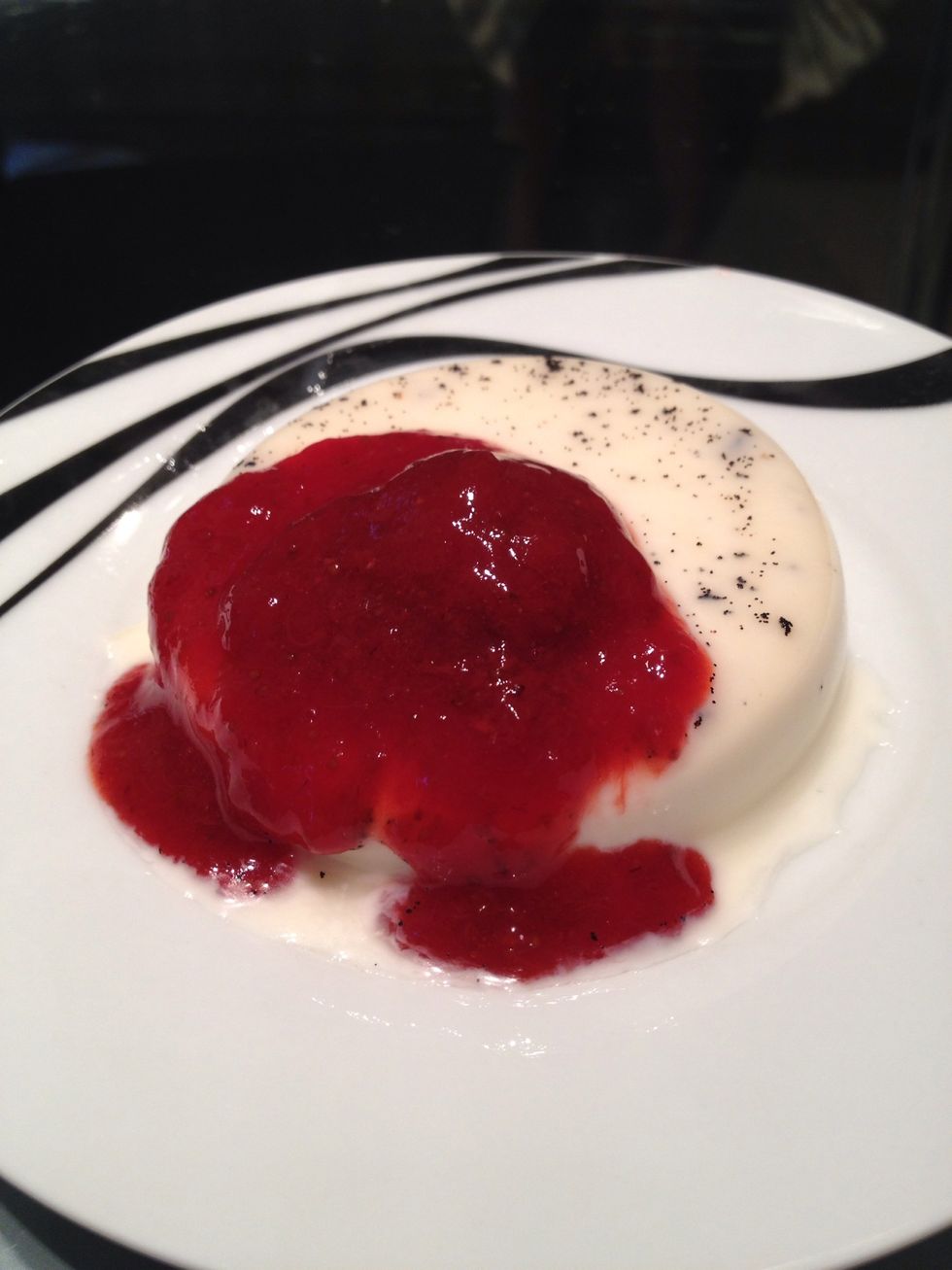 cool down and put in the fridge, serve over the panna cotta. (if u have time, u can do this just before serving) warm strawberry sauce over cold panna cotta is good. Make sure it's not too hot tho.