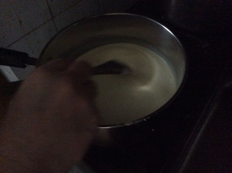 After a few minutes on medium heat take out the vanilla bean and pour the mixture into plastic jug
