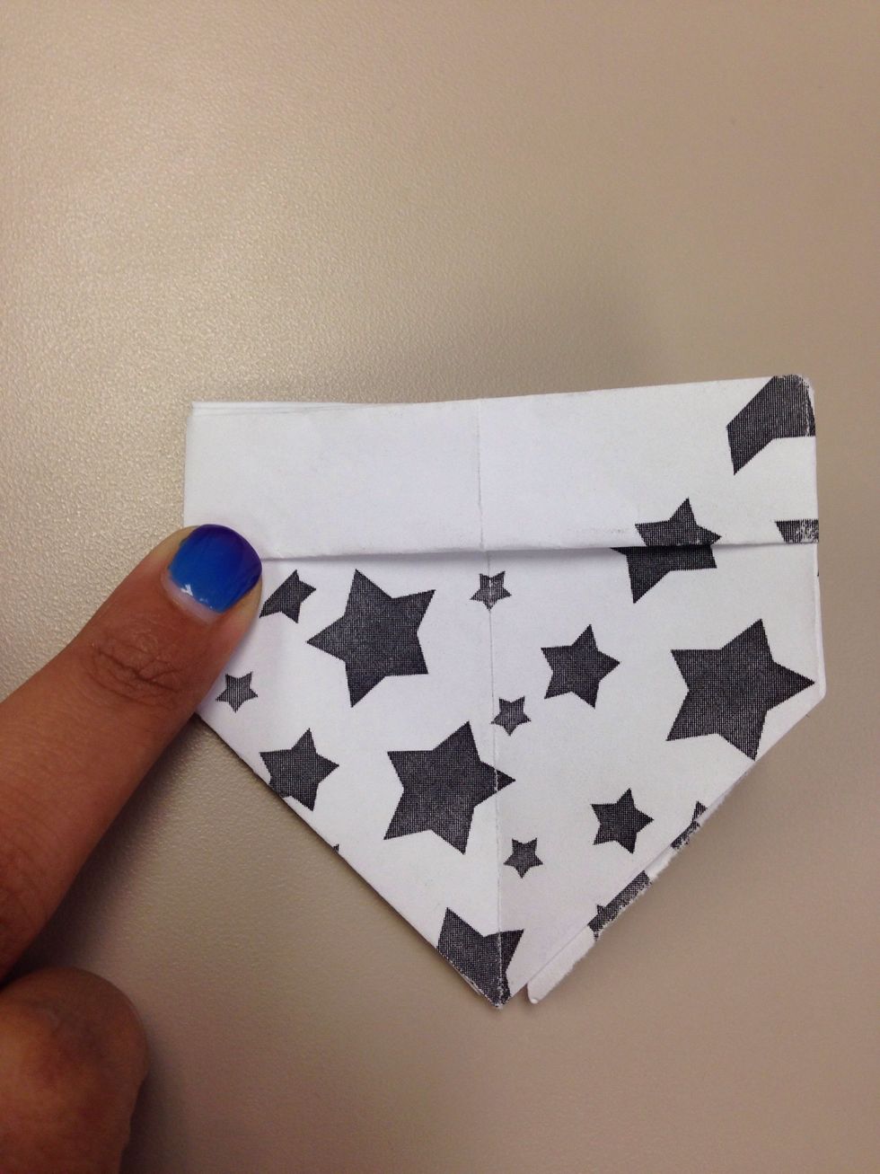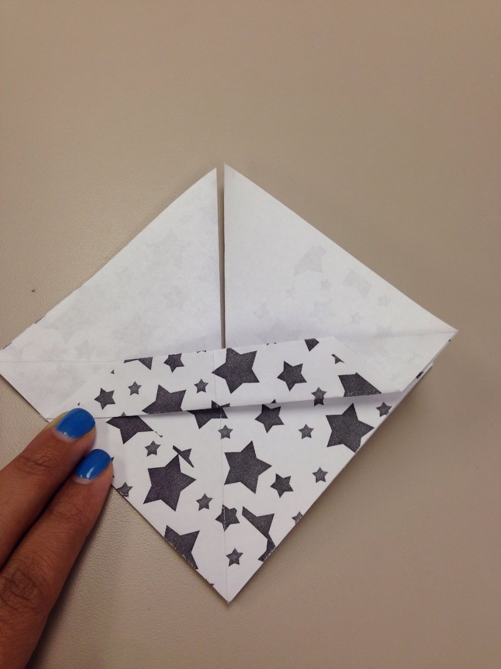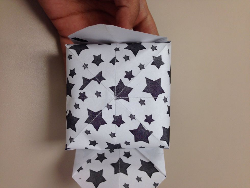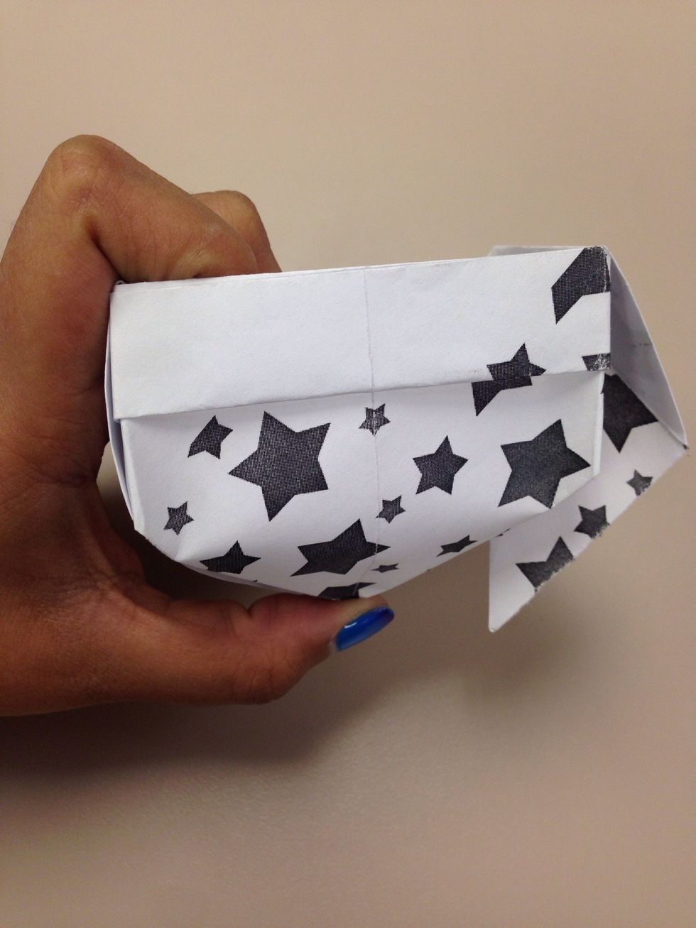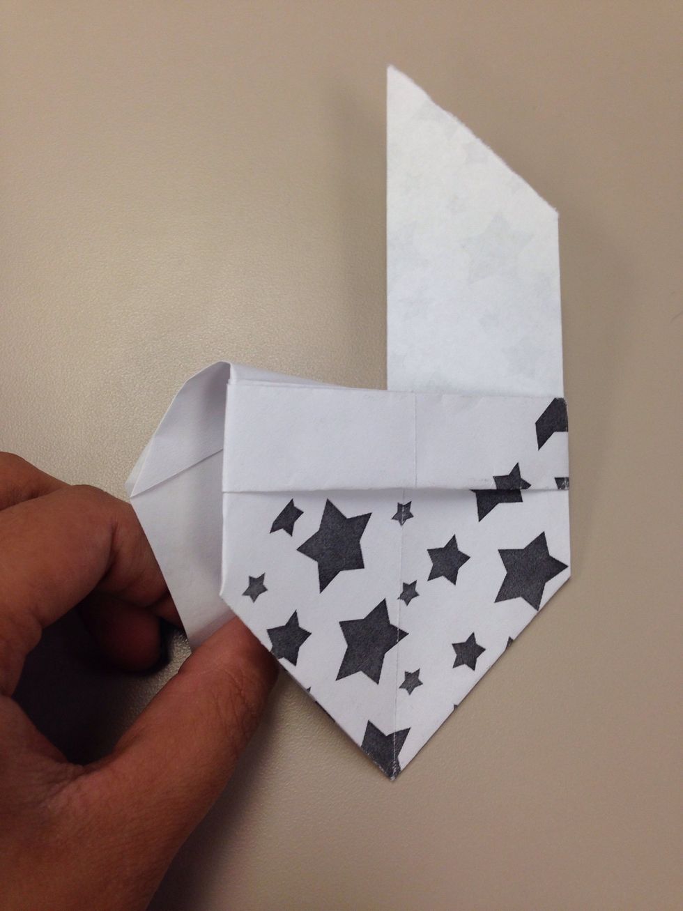 Now hold it as shown and pull it downwards. This should be easy because we have been creasing everything from the start.