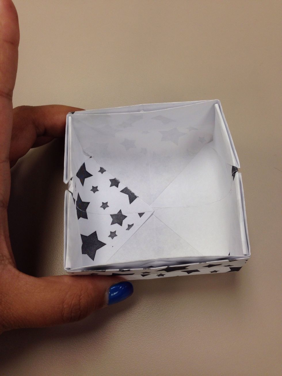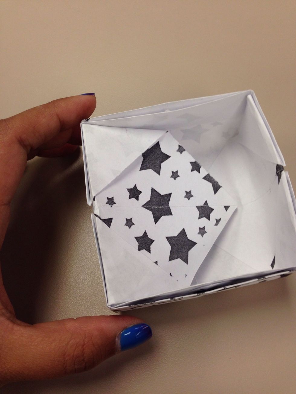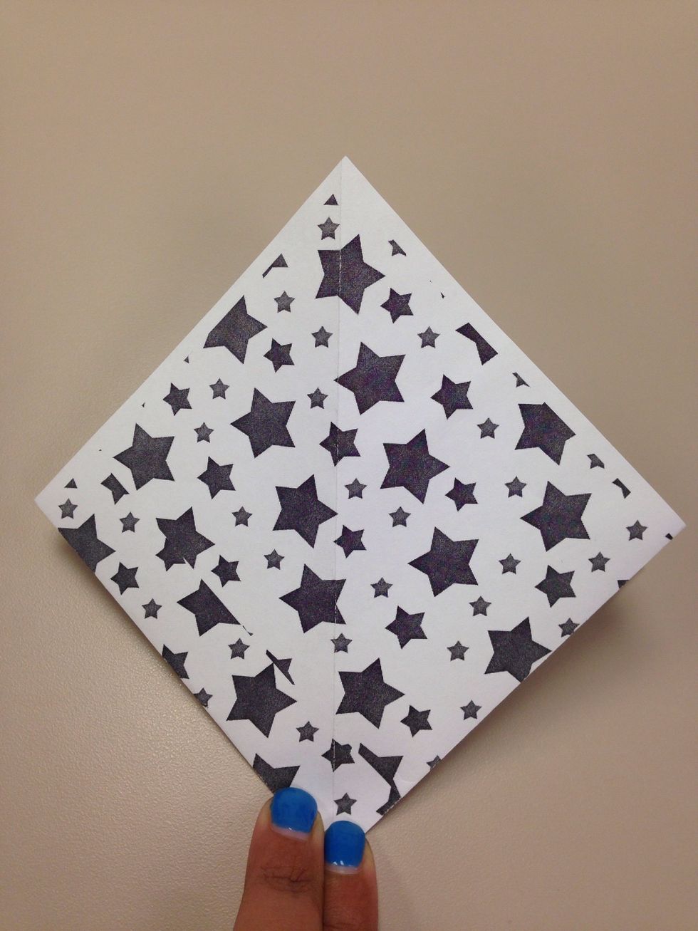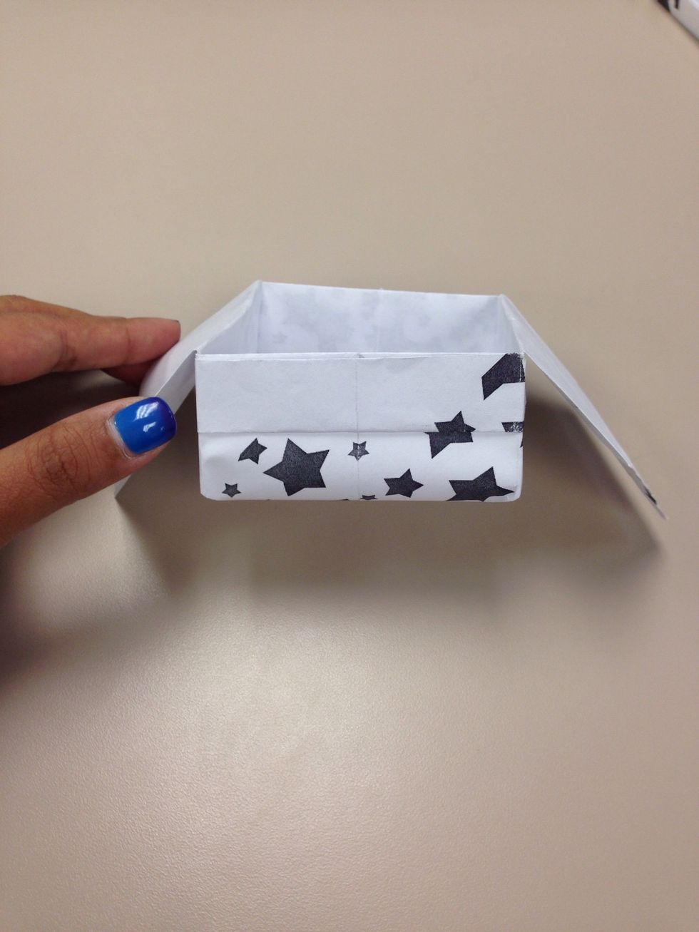 Now hold it as shown and pull it downwards. This should be easy because we have been creasing everything from the start.