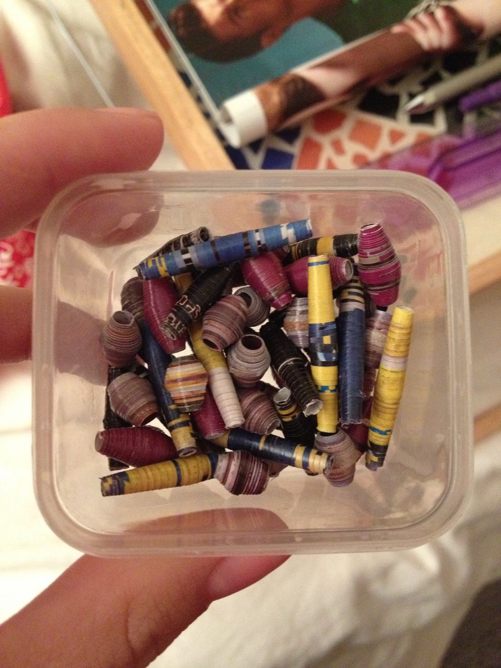 I threw some of the beads I've already made on some wire so you can get an idea of the "finished product." I'm hoping to make some paper bead jewelry as gifts for the holidays.