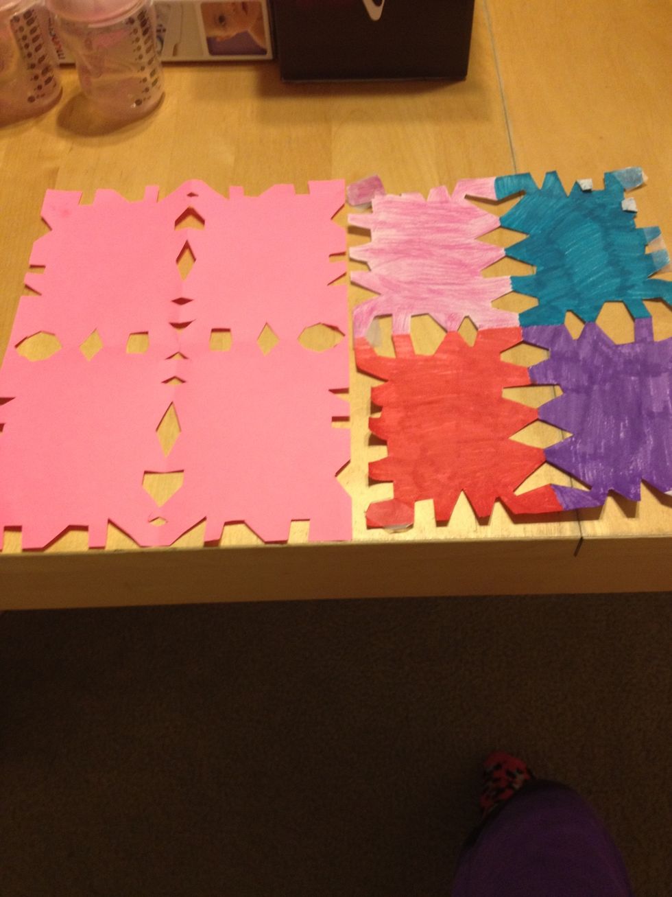 Next you can cut triangles and other shapes.It looks better if you cut irregular shapes.