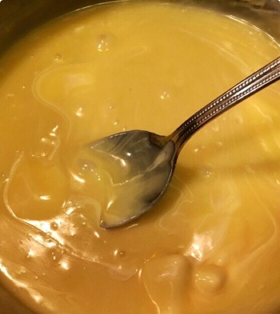 Add the heavy cream. There's no need to whisk, just stir with a spoon.