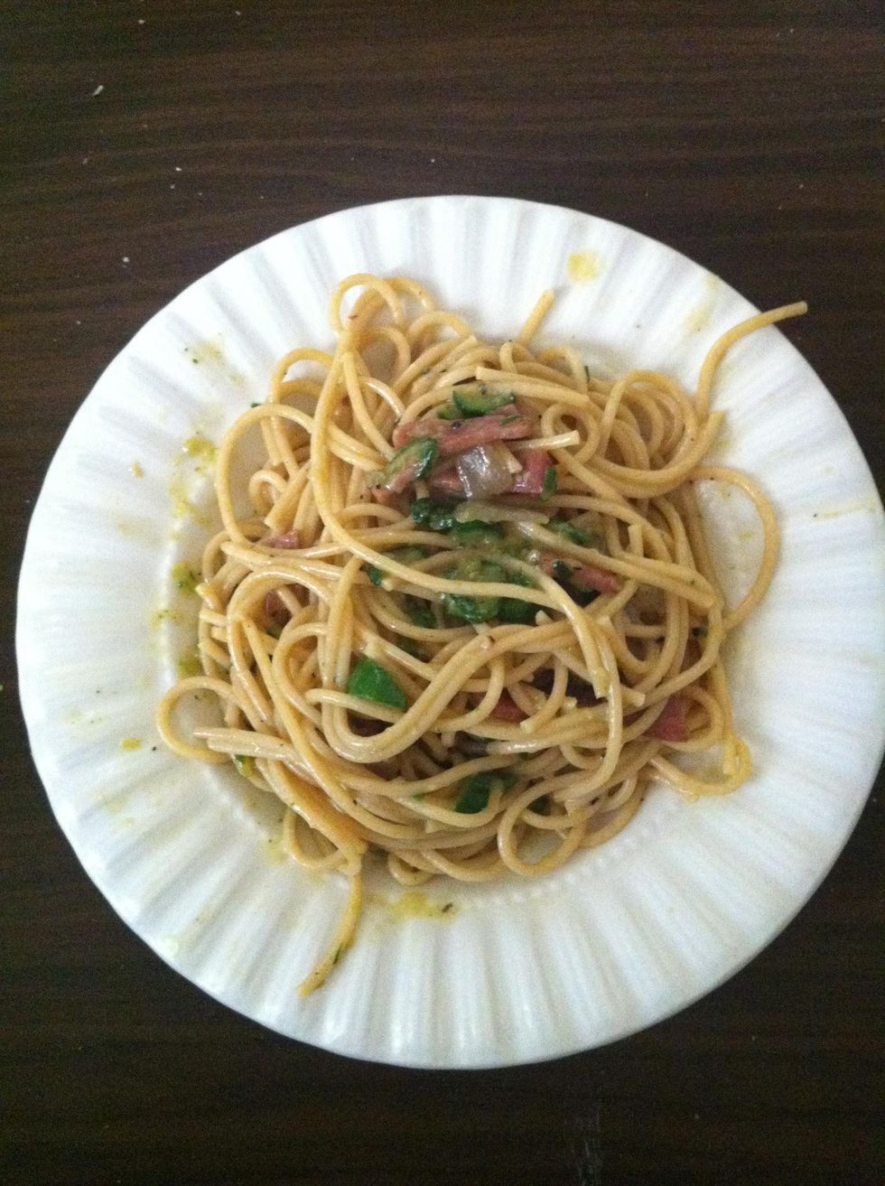 Meanwhile put the water to boil. Once it's boiling, add 2tbs of sea salt to the water and 200gr of whole wheat spaghetti.