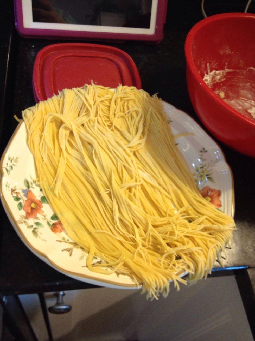 Put eggs and flour into food processor (or you can mix together with a well on the counter, gradually incorporating the flour)
