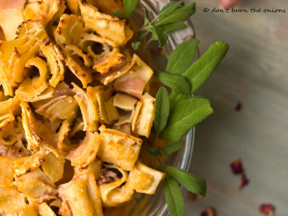 Bake in a moderate oven for about 15 minutes or until the Parmesan cheese turns brown and crispy. Rest dish for a few minutes. Garnish with sage or basil leaves and serve :) Happy Valentine's Day!