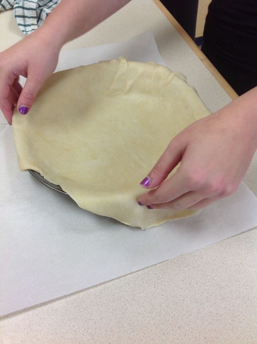 Place dough in pie pan and trim edges