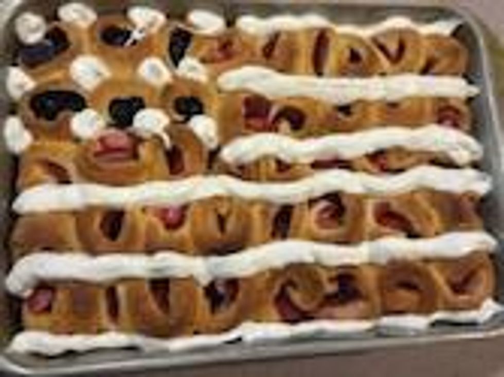 Arrange the rolls in "stripes" in the pan to resemble the American flag.