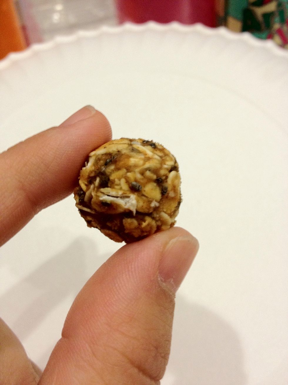 Form into small bite size balls. You probably could get 11 or 12 balls but I only got 10 because I ate a pretty big spoonful before forming mine 😁