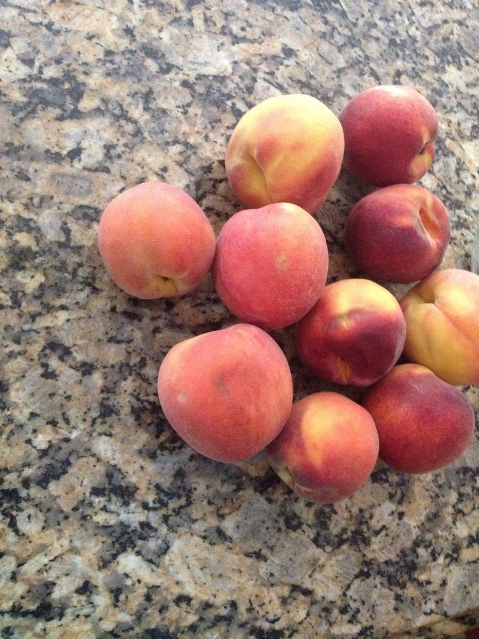Slice into a bowl. Add about 2-4 TB sugar (you'll need to taste) as each bushel of peaches might be sweeter or less sweet. Add 1/2 tsp cinnamon, a TB flour, and half a squeezed lemon juice