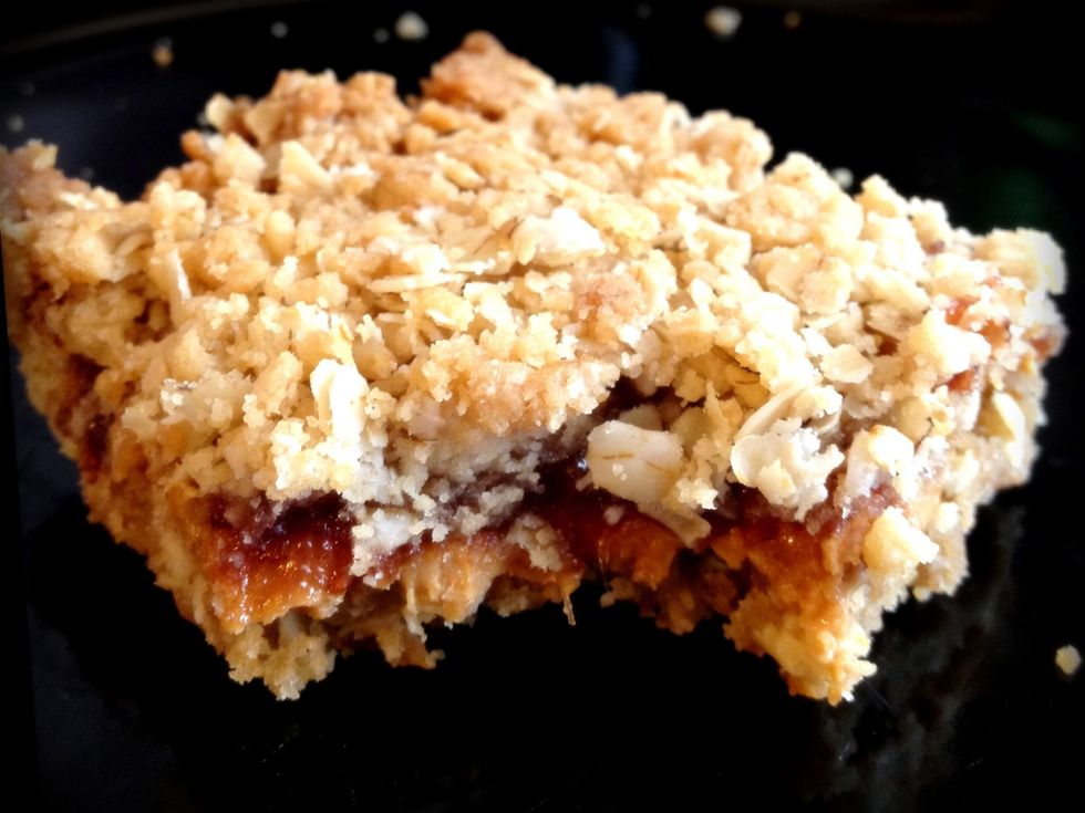 Heat the peanut butter in the microwave for 20 seconds to make it easier to spread. Spread it evenly being careful not to disturb the oatmeal mixture too much. It's not necessary to go to the edge.