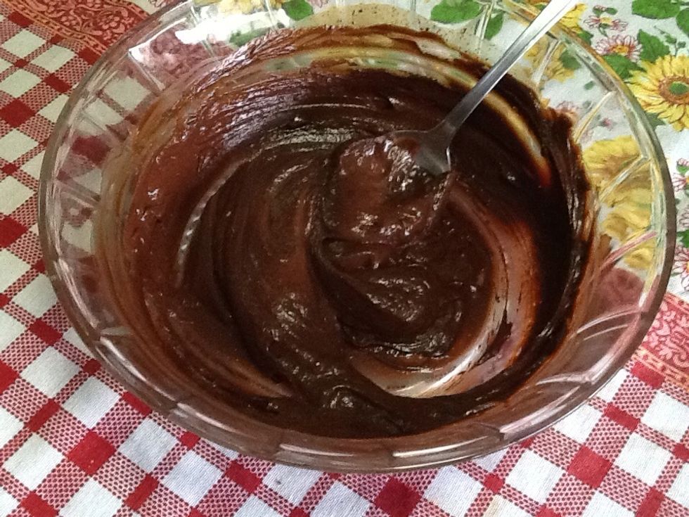 Add all of the chocolate mixture into the flour mixture and stir until combined.