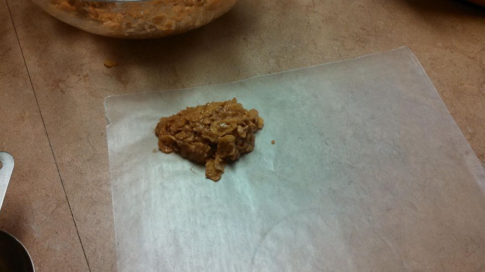 7. Then, take a spoon and scoop the desired amount onto a sheet of wax paper. If the clumps start to come apart, push them back together with two spoons.
