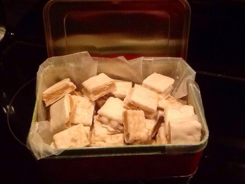 Once completely cool and hardened, use a sharp knife to slice crackers cleanly in half. Also can leave them whole, or even some undipped.