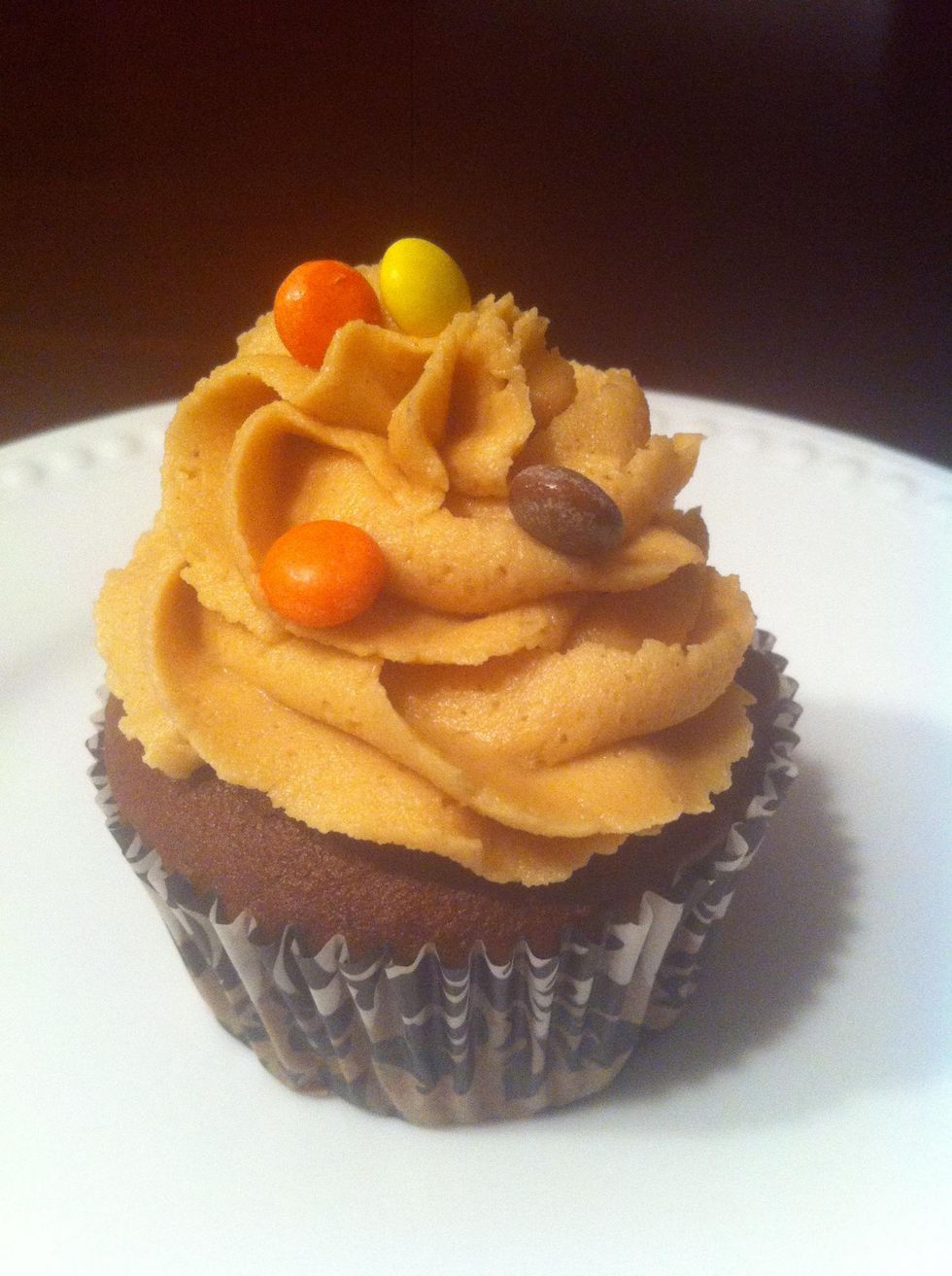 Frost and top with your favorite toppings. My husband loves peanut butter. He went wild over Reese's Peanut Butter Cupcakes!