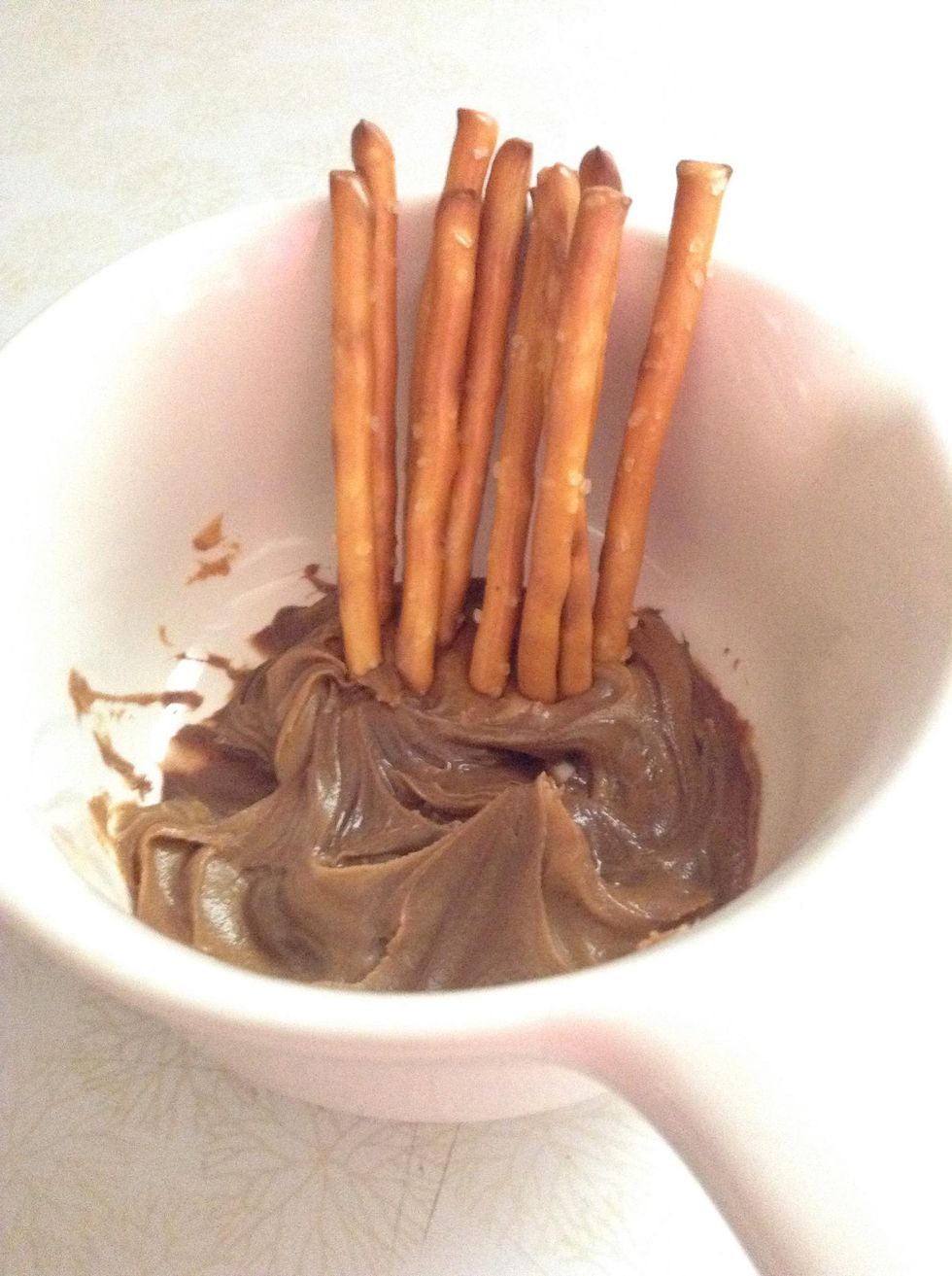 First gather your ingredients.Next add them into a bowlThen stirAnd ba bam!! This is great with pretzels or anything really