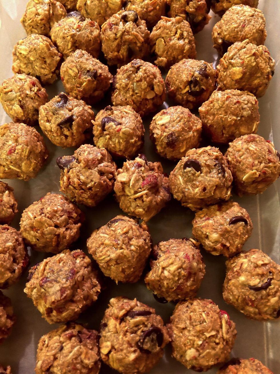 Put the mix in the refrigerator for 15-20 minutes. This will help it stick better. Roll this into balls and store in the refrigerator if you like. Small, bite size are easy snacks.