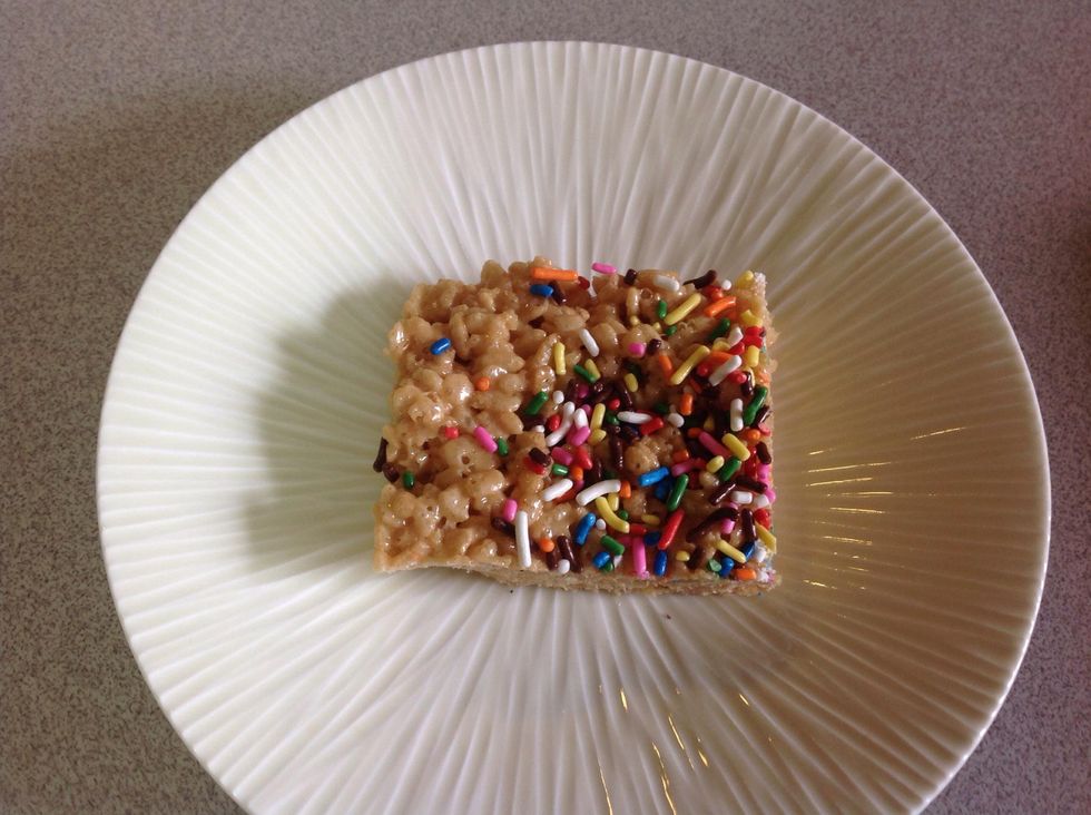 Sprinkle on top until it covers most of the Rice Krispie.