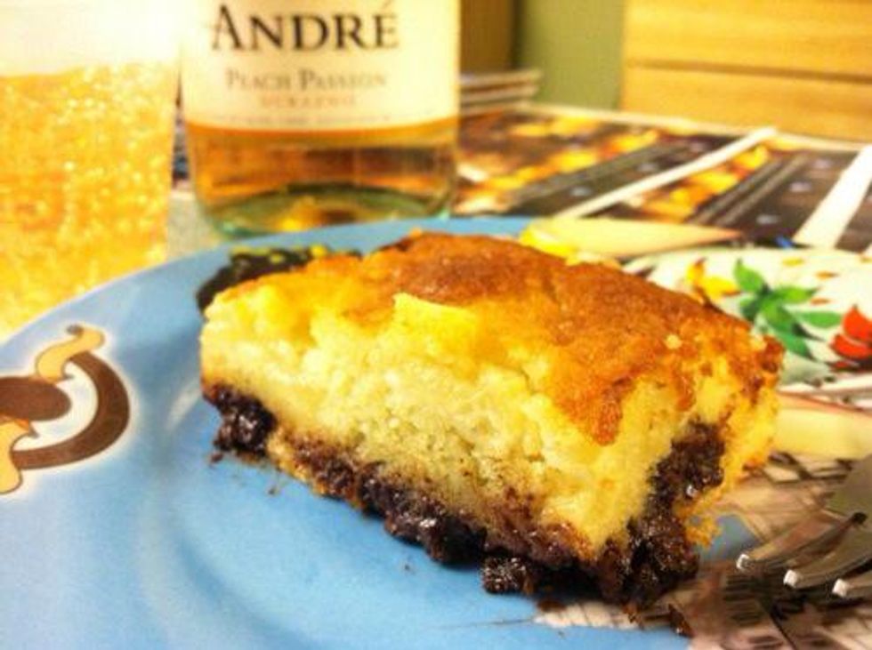 This cake was super yummy (especially with a glass of peach passion champagne). And it’s good for chocolate lovers too! - agreatdayforcake.tumblr.com