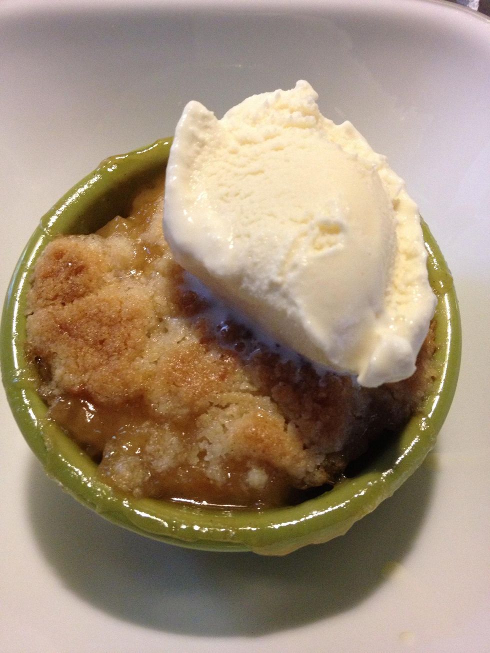 Put ice cream or eat by itself and enjoy. One of the desserts I came up with that all my friends enjoyed at a party :))) I had put the hot ramekin in a bowl then Ice cream on top :)