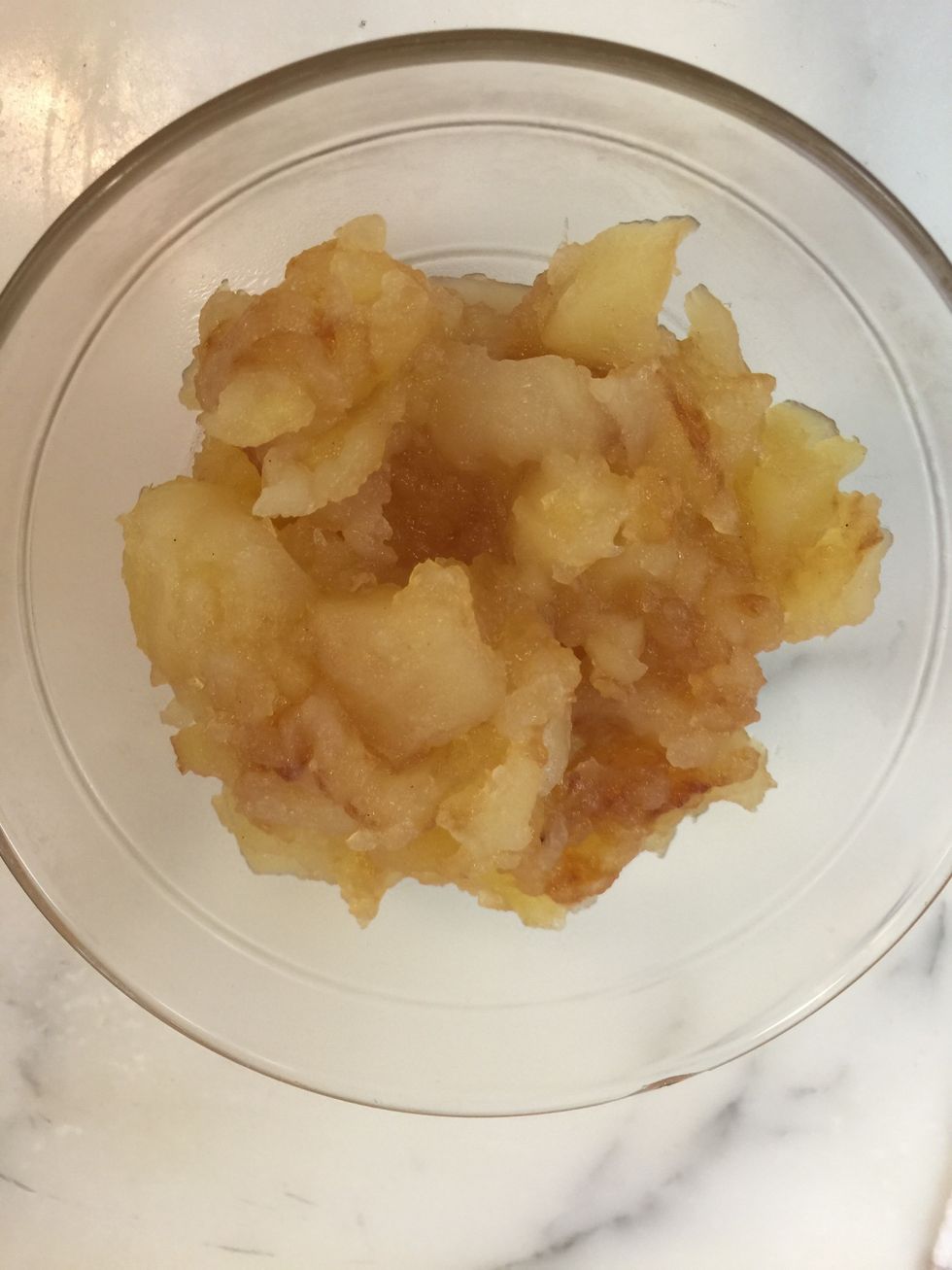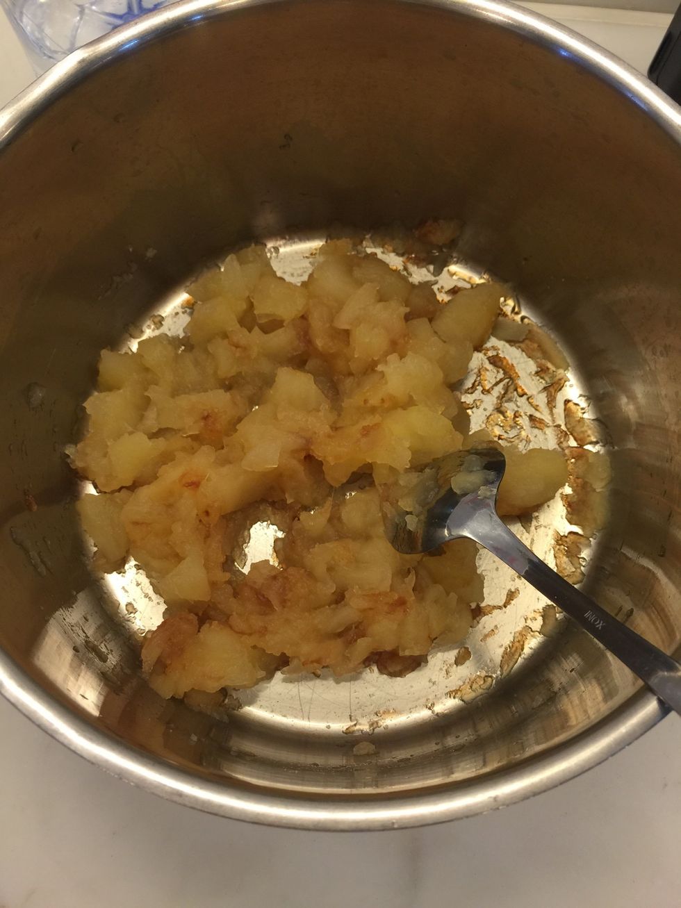 Cube apples and cook them on low with 1 tbsp sugar and 1 tbsp of water. Until they are tender. Leave to cool