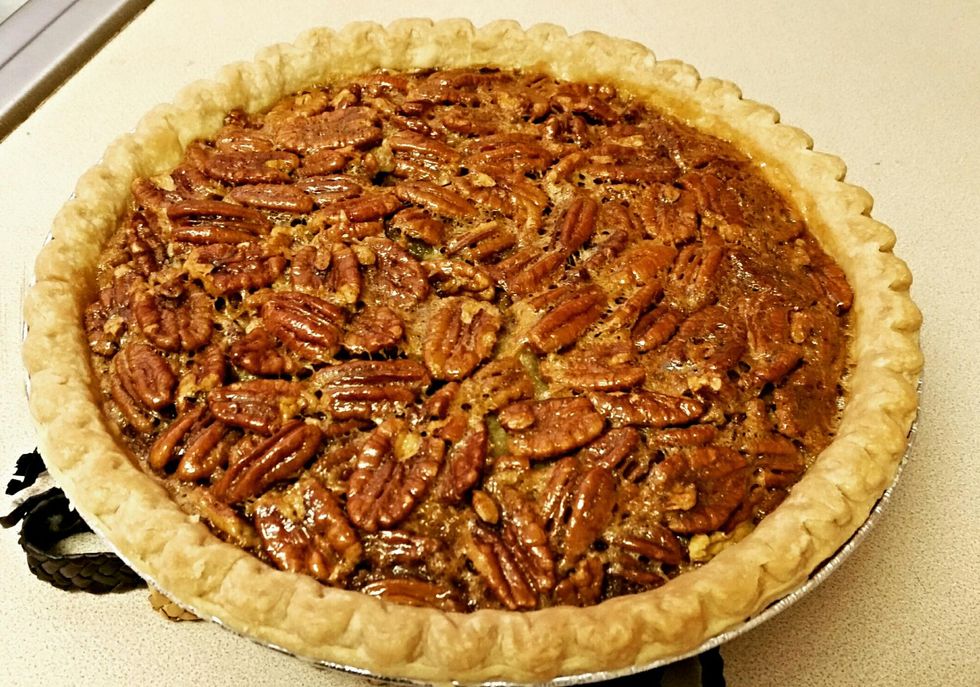 Preheat oven to 350°F. Mix corn syrup, eggs, sugar, butter and vanilla using a spoon. Stir in pecans.