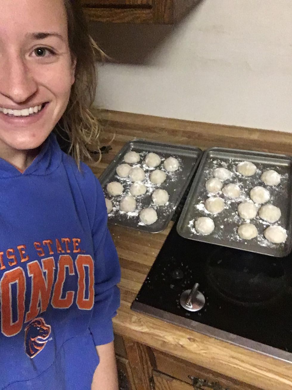 Add in chopped pecans, gradually. One cup may be too much, depending on the consistency. It should stick together.