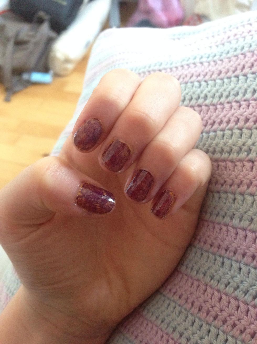 Use your base color! It is best to use a "light" color!Use a plasticbag a pen and a quick dry top coat!Now my nails look like this!Use Quick dry top coat! And DONE!!💅💋
