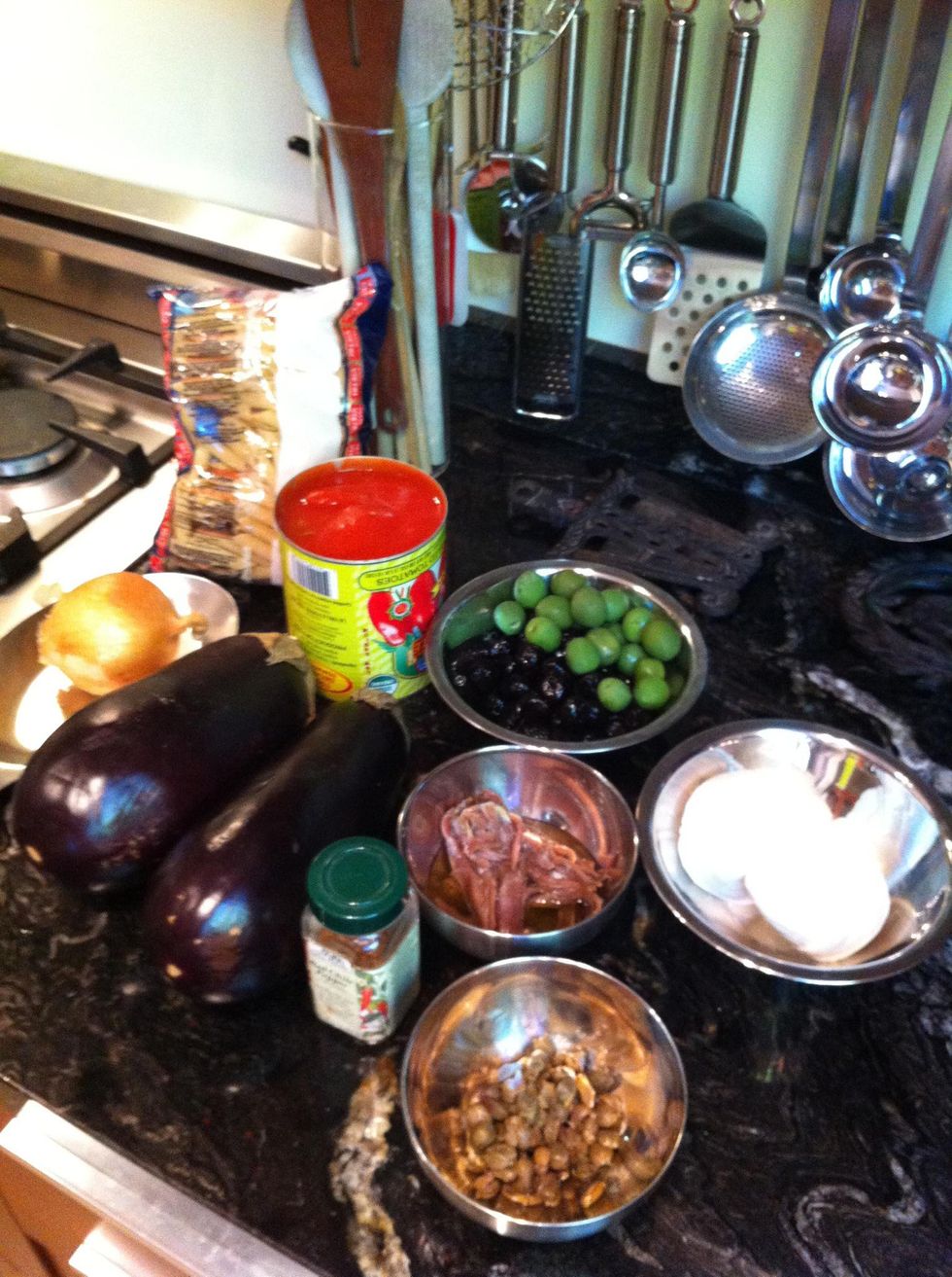 Slice eggplant sprinkle with salt and press between paper towel for about 10 minutes.
